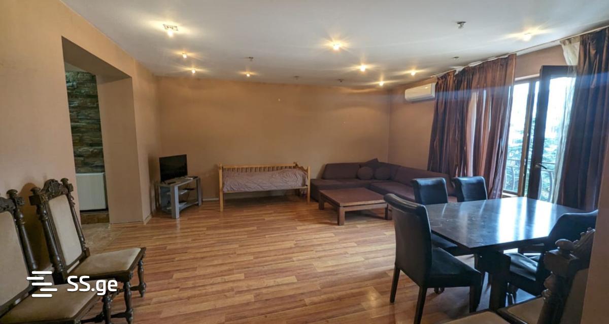 Renovated apartment for rent, Al. On Kazbegi street, in the vicinity of Shanghai settlement, opposite the European school. 2 bedrooms, both with primary lighting. with 2 balconies. With a large living room and kitchen. The apartment has 2 air conditioners, central heating, necessary appliances and furniture.Contact me for more information.