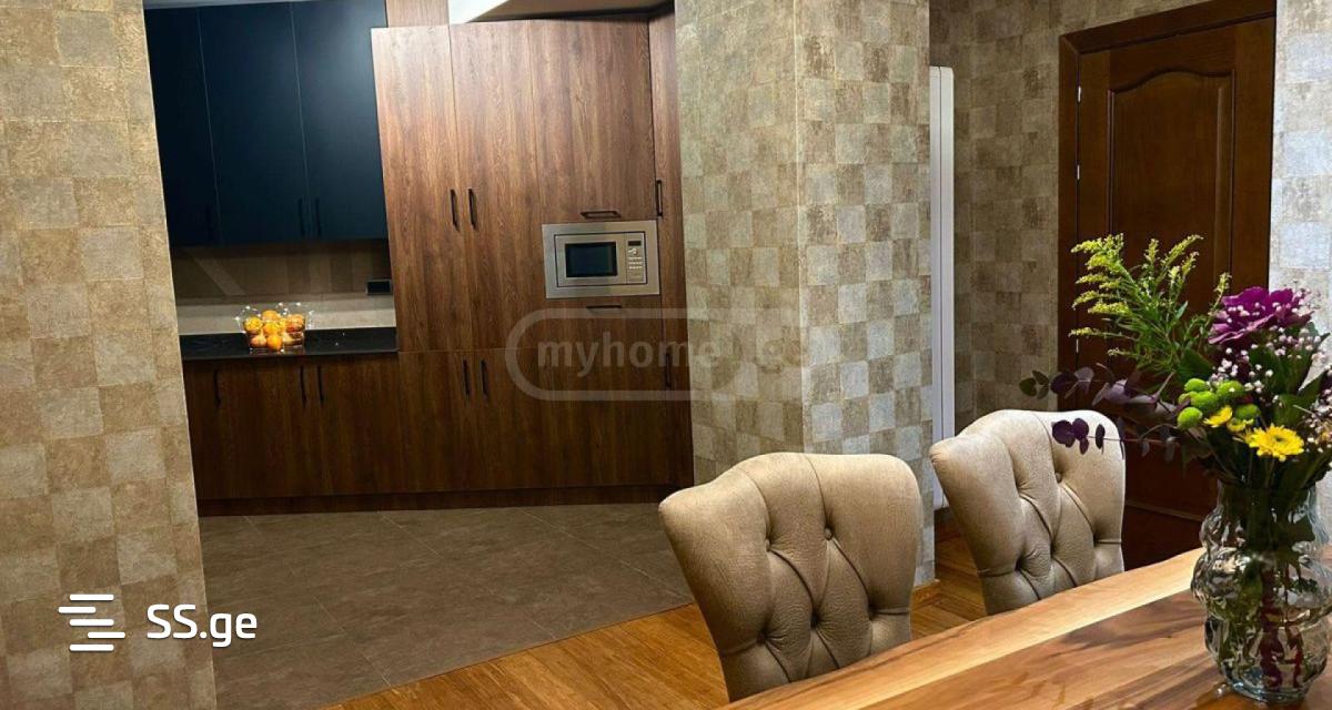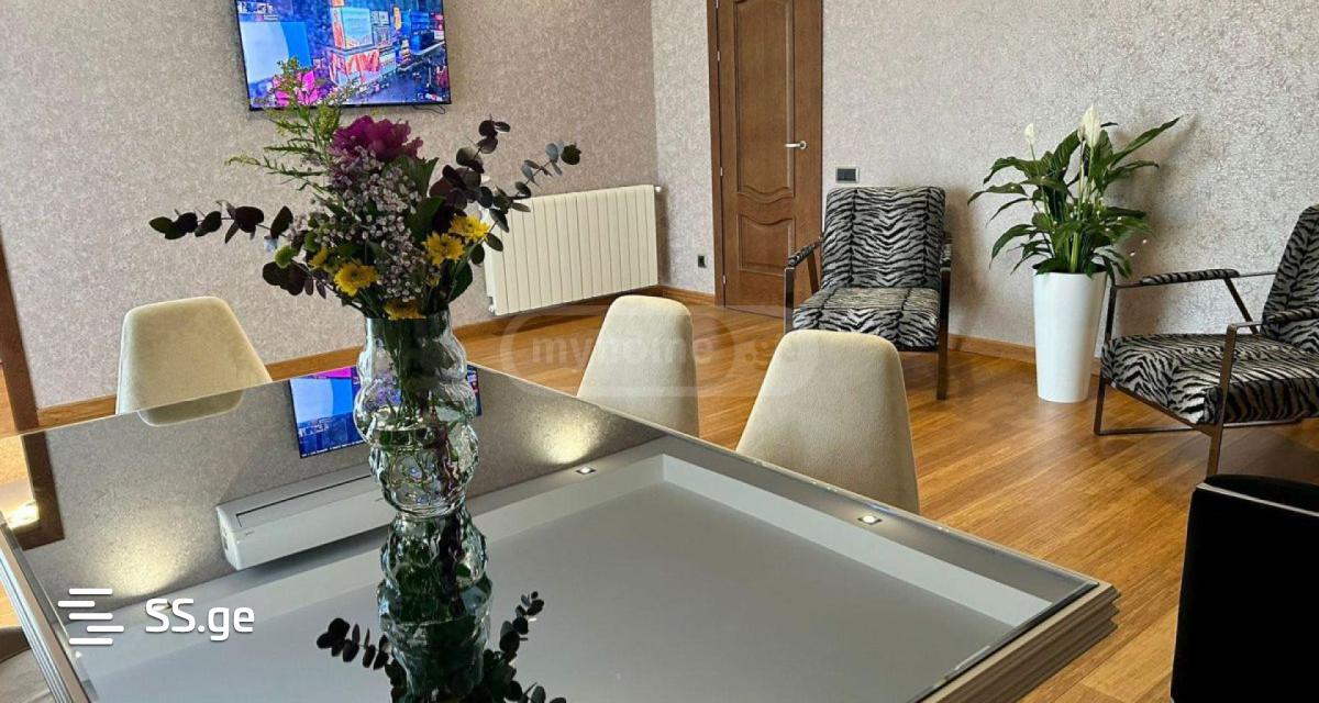 A four-room sunny apartment is for rent in a newly built building in Vake. Windows and a balcony make it especially bright. The terrace is ideal for relaxing at any time of the day. The apartment is renovated using high-quality, environmentally sound materials purchased in Spain. High-quality thermal insulation and aluminum windows protect the apartment from cold and noise. The apartment has a beautiful bamboo floor. You will also find Spanish-made orthopedic mattresses, which are so important for healthy sleep. You will also have two parking spaces at your disposal, which will allow you to park your car comfortably and quickly in a place on your property. The apartment is reliably protected, modern security systems are installed. And beautiful plants and jacuzzi will make your life even more fascinating.
