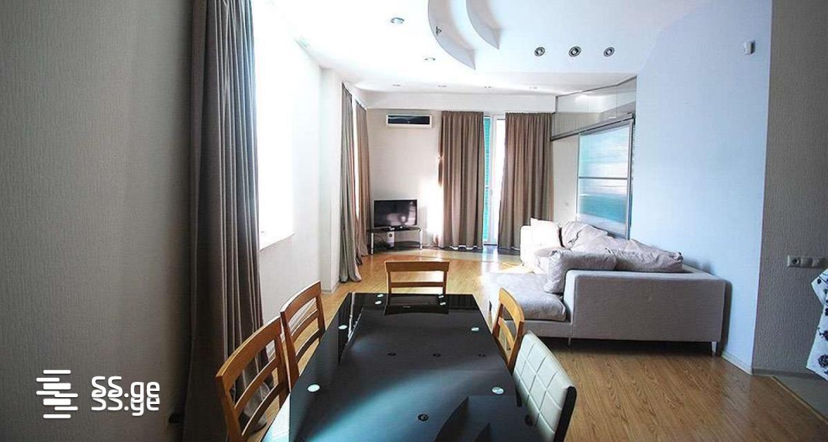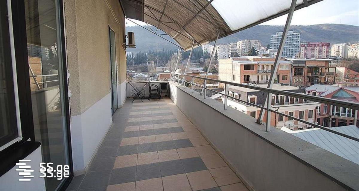 Four-room, non-standard, fully furnished apartment in the center of Tbilisi, on Vera, with views from all rooms, a large veranda and balconies from all rooms. 3 bedrooms, 2 bathrooms, garage, furniture and appliances.