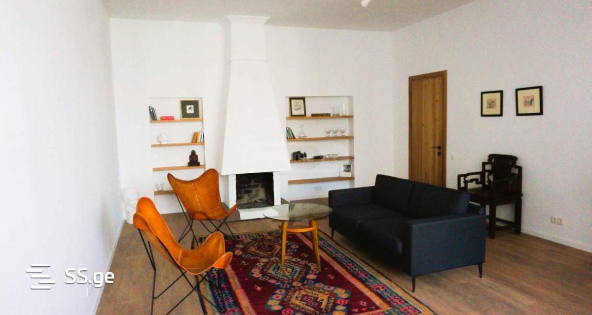 Newly renovated 3-bedroom apartment at Uznadze 79 near the Marjanishvili theater, called "Stalinka". The apartment has a 4 sq.m. balcony and a fireplace....it has parking spaces in the fenced yard. The yard is greened with perennial trees, where there is a children's playground/space. The apartment has a balcony.