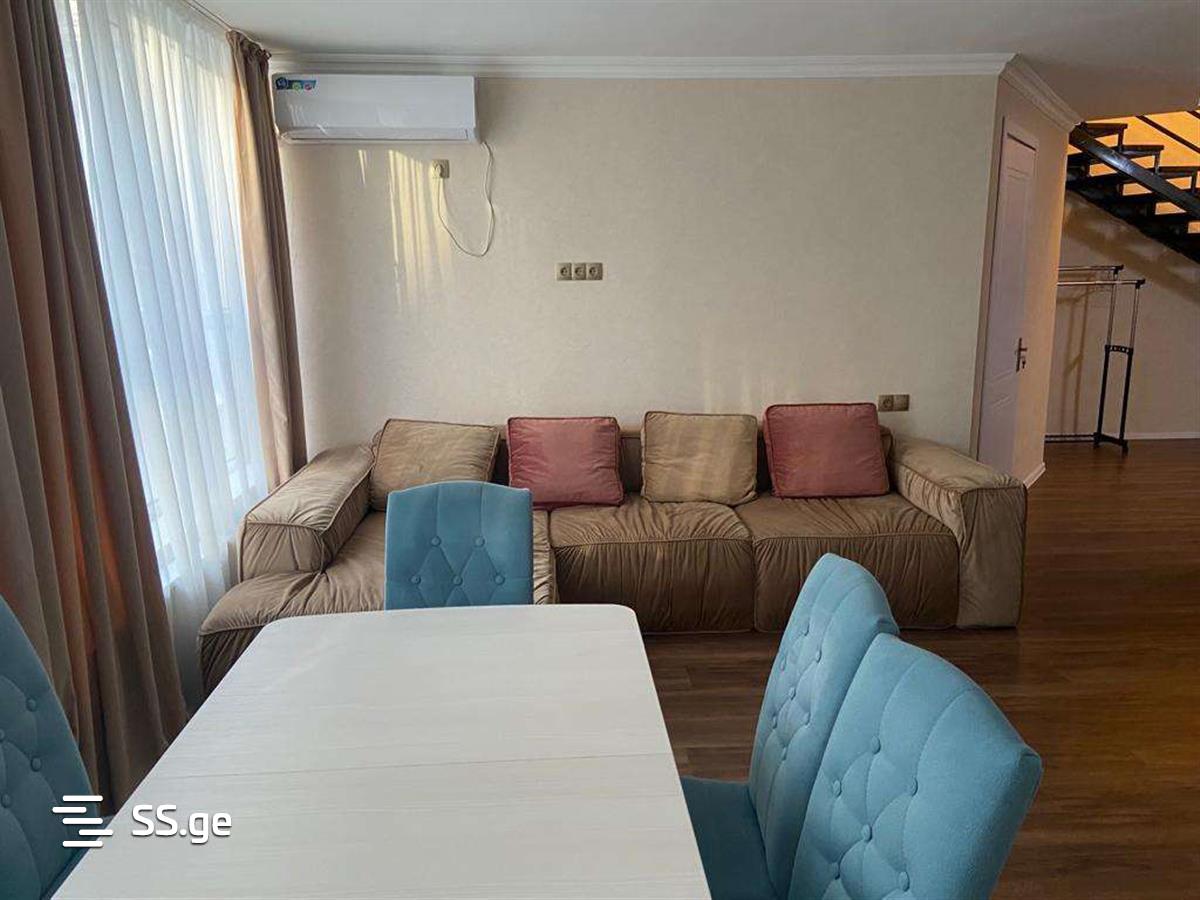 A 4-room apartment with 3 bedrooms is for sale, partially furnished, the apartment is of duplex type, it does not have a balcony and has large stained glass windows.