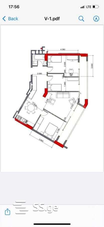 88 sq.m bright apartment under construction for sale. City of Tbilisi, Demetrius Tydadaduvi Street, N40, Block "B", Corp. N3, apartment 44. Number of rooms 4. The apartment is burdened with a white frame. The apartment is registered in the public register