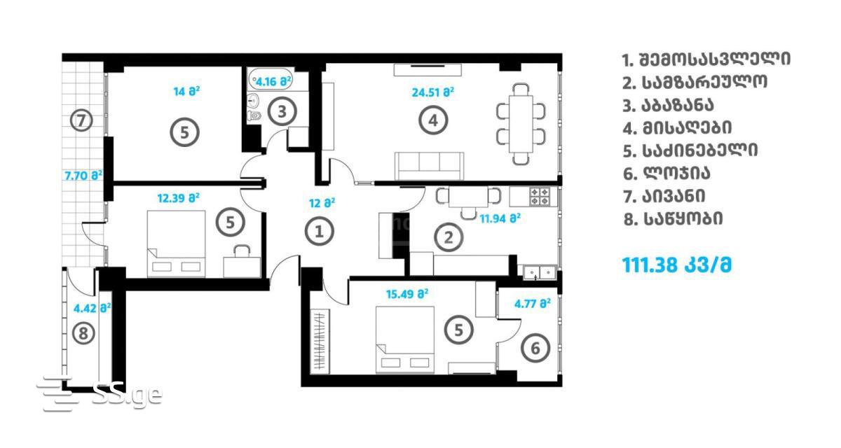 4-room apartment for sale in Gldani 2 micro-district, the building is an old built, experimental project. You can see the layout and squareness in detail on the attached drawing.