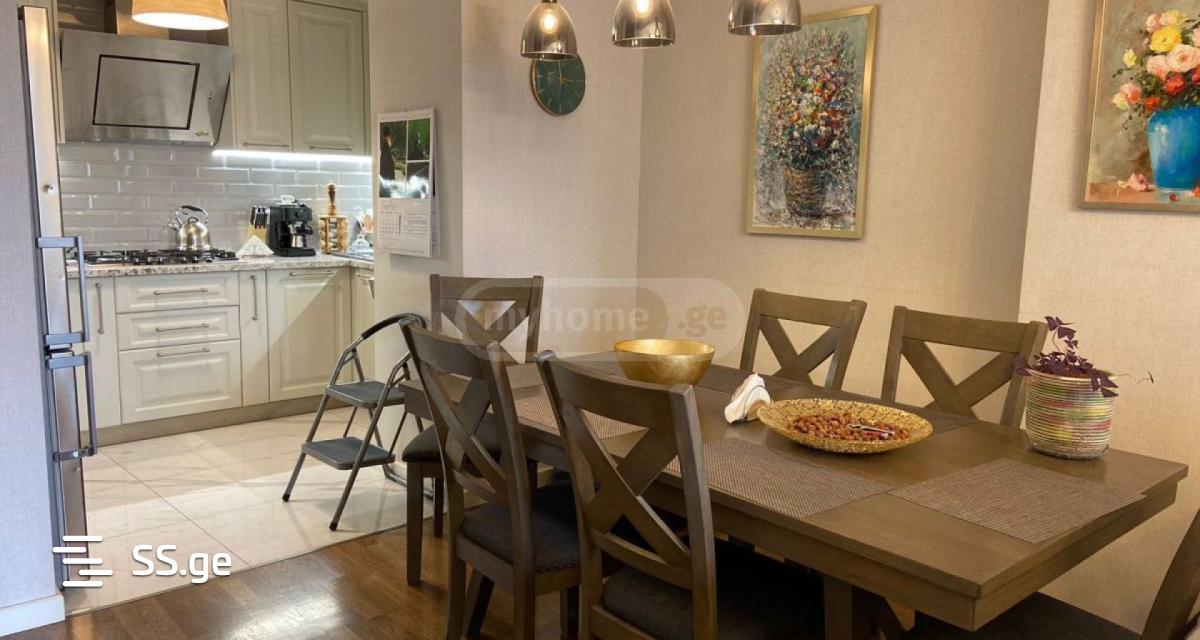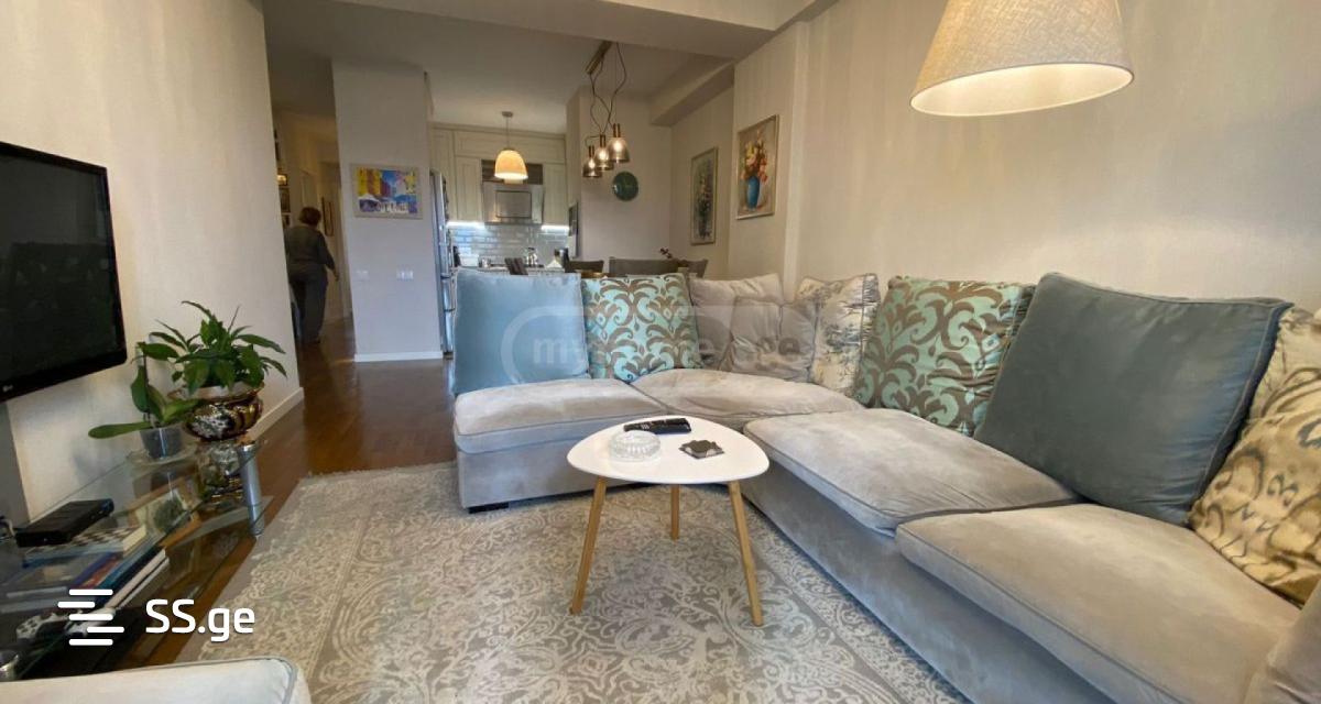 Apartment for sale in Arki Isan. The apartment is spacious, with a view of Mtatsminda and the side of the inner courtyard. There are small balconies on both sides. It is renovated with the highest quality materials and the equipment is fully Bosch.
