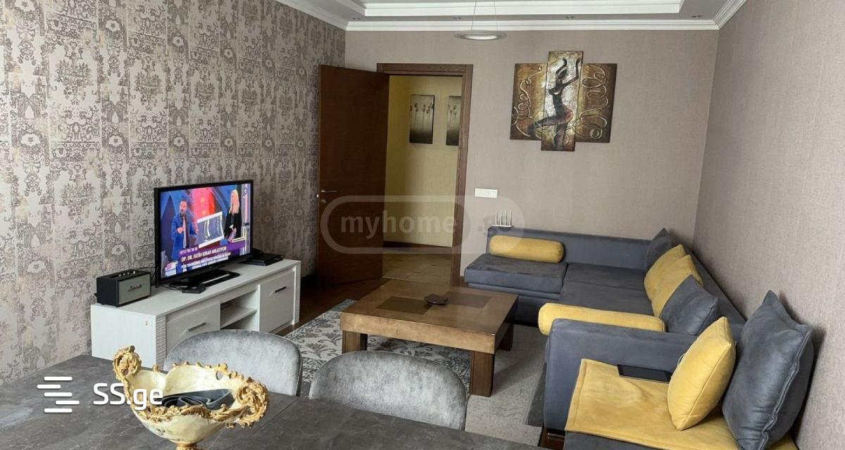 100 sq.m. 4-room apartment, with furniture and appliances, 2 bedrooms, separate living room and separate kitchen, warm floor heating, wooden parquet, 3 air conditioners, 2 TVs