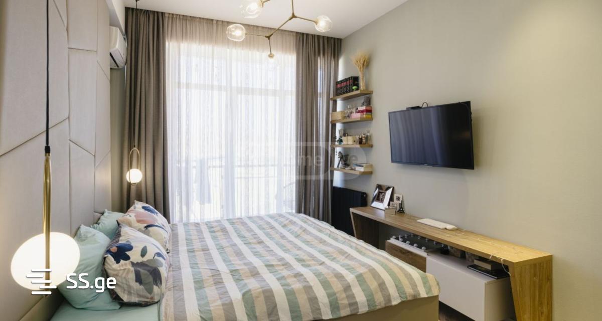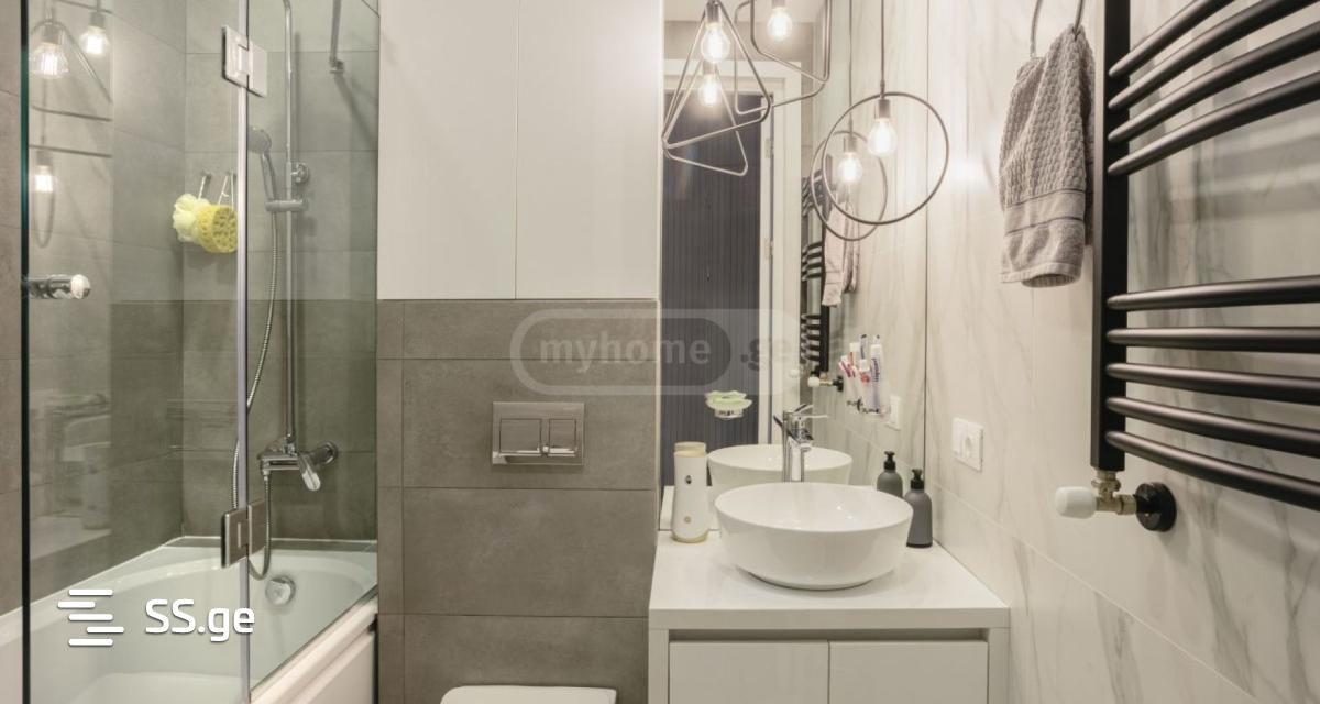 4-room, fully renovated, furnished and equipped spacious apartment with parking "Mtsvane Ubani Lisi" is for sale. Total area: 106.7 m2. Studio type kitchen with living room, 3 bedrooms, 2 bathrooms, 2 balconies (15 m²). Central heating is installed. The complex is equipped with a square, a sports field and greenery.