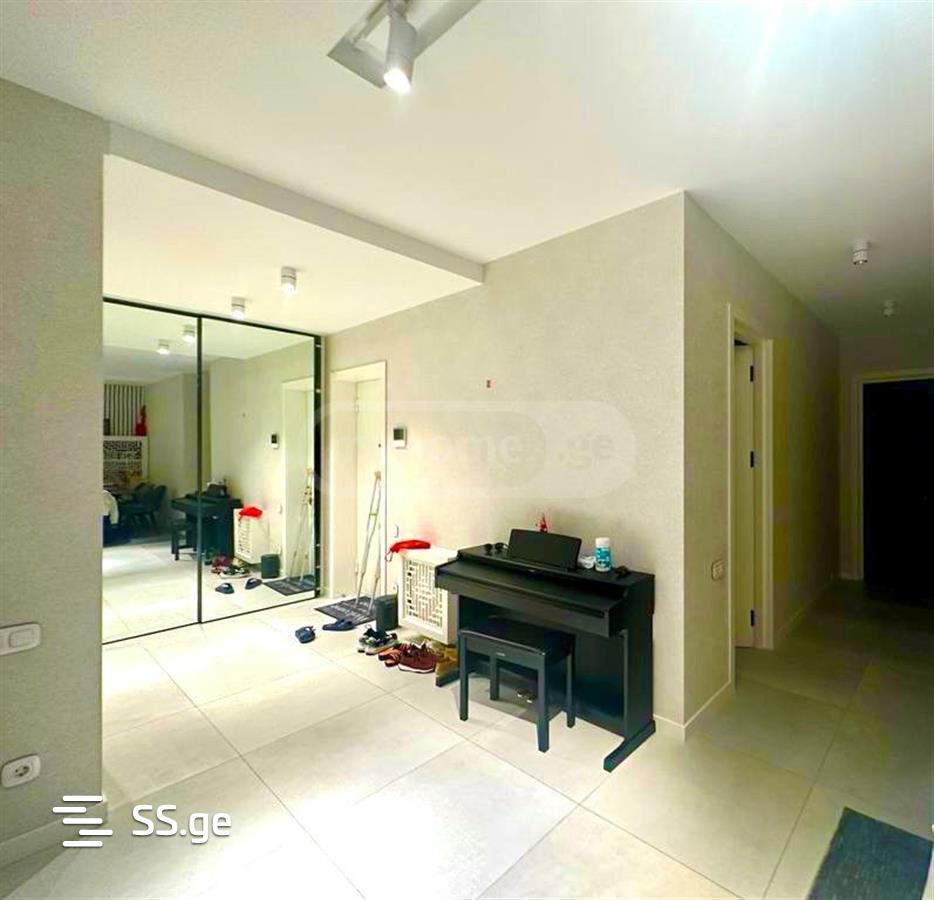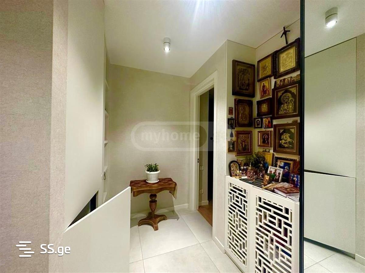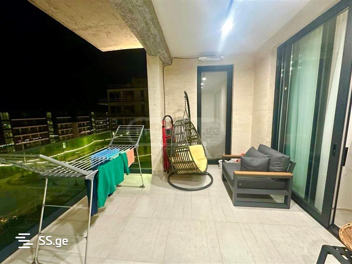 Premium class renovated apartment for sale in Krtsanis Villa Residence, 4 rooms with 3 bedrooms, 30 sq.m. With a veranda, a beautiful view of the pool, a large dressing room, parking for two cars, a pool, recreational, entertainment and sports infrastructure, 24-hour security, built-in appliances and furniture.