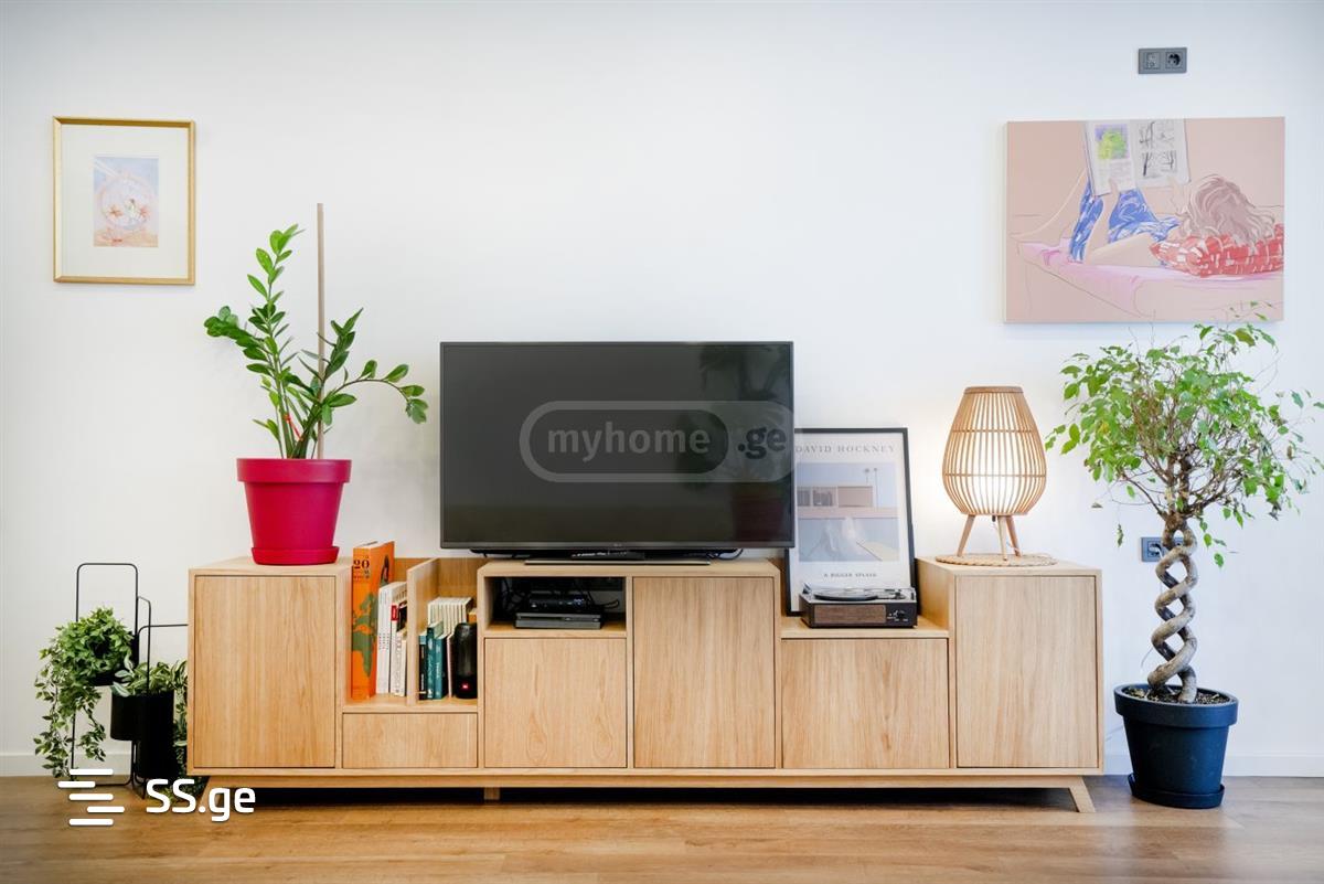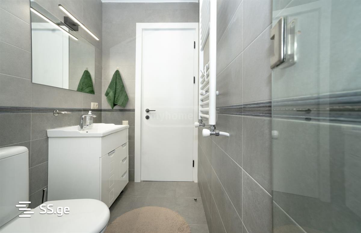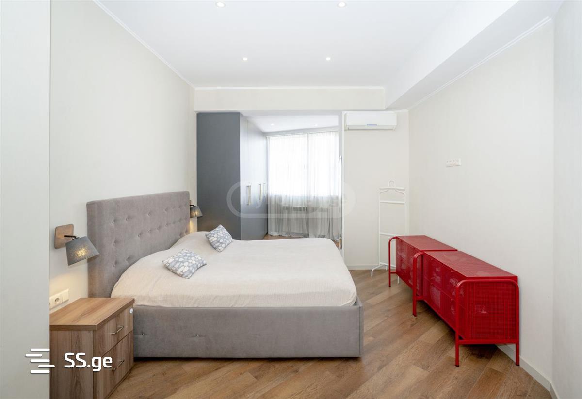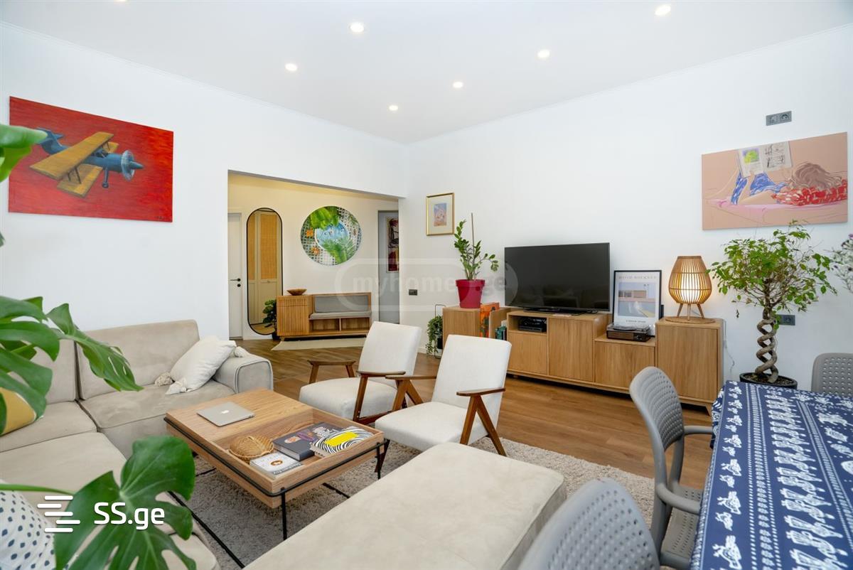 A newly renovated apartment for sale, a project on the edge of Mtkvari, 150 meters from the Palace of Sports and the metro. The apartment is newly renovated, the built-in furniture and appliances remain. Living room, isolated kitchen, both spaces are connected to a covered veranda and a balcony. Master bedroom (with en-suite bathroom), second bedroom, second bathroom, technical space (laundry + storage). Total area 142.0 m2, veranda area 23, balcony area 6.5.