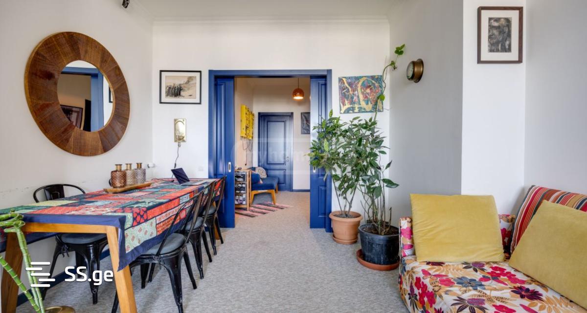 A newly renovated apartment with 3 bedrooms, two bathrooms, an independent kitchen and views of Tbilisi is for sale in a newly built building on Marabdi Street in Vake.