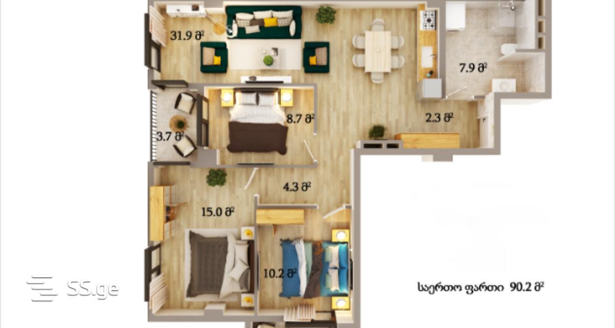 The residential complex is located near the metro station "Akhmeteli Theater" (5 minutes by car, 15 minutes by foot). The residential complex consists of two blocks: A and B. Comfortable apartments are perfectly designed - all rooms have windows and balconies. The project envisages a paved and green yard. Residents have both an above-ground and an underground parking lot at their disposal. Delivery conditions: green frame • plastered walls • stretched floor • metal-plastic doors and windows • iron entrance door • networked communication points in the apartment • heating pipes • 5 e-mails in the room. Point • The construction of the tiled balcony project has been completed. It is possible to start the internal repair work in the apartment immediately after purchasing the apartment.