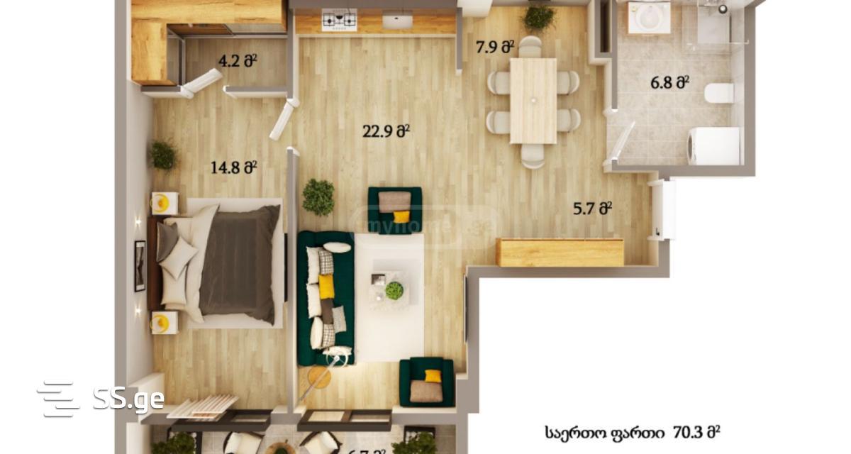 A comfortable European-type residential complex is located in an open area, near the Varketili metro station. Modern style, relatively low-rise, compact buildings create a cozy, quiet living space. An additional advantage of the "Sunny City" area is the well-equipped infrastructure and well-organized common spaces. The complex is served by underground and surface parking lots. Handover conditions: white frame • internal partitions • plastered walls (except bathrooms) • stretch floor • metal-plastic window • iron entrance door • central stand • tiled balcony