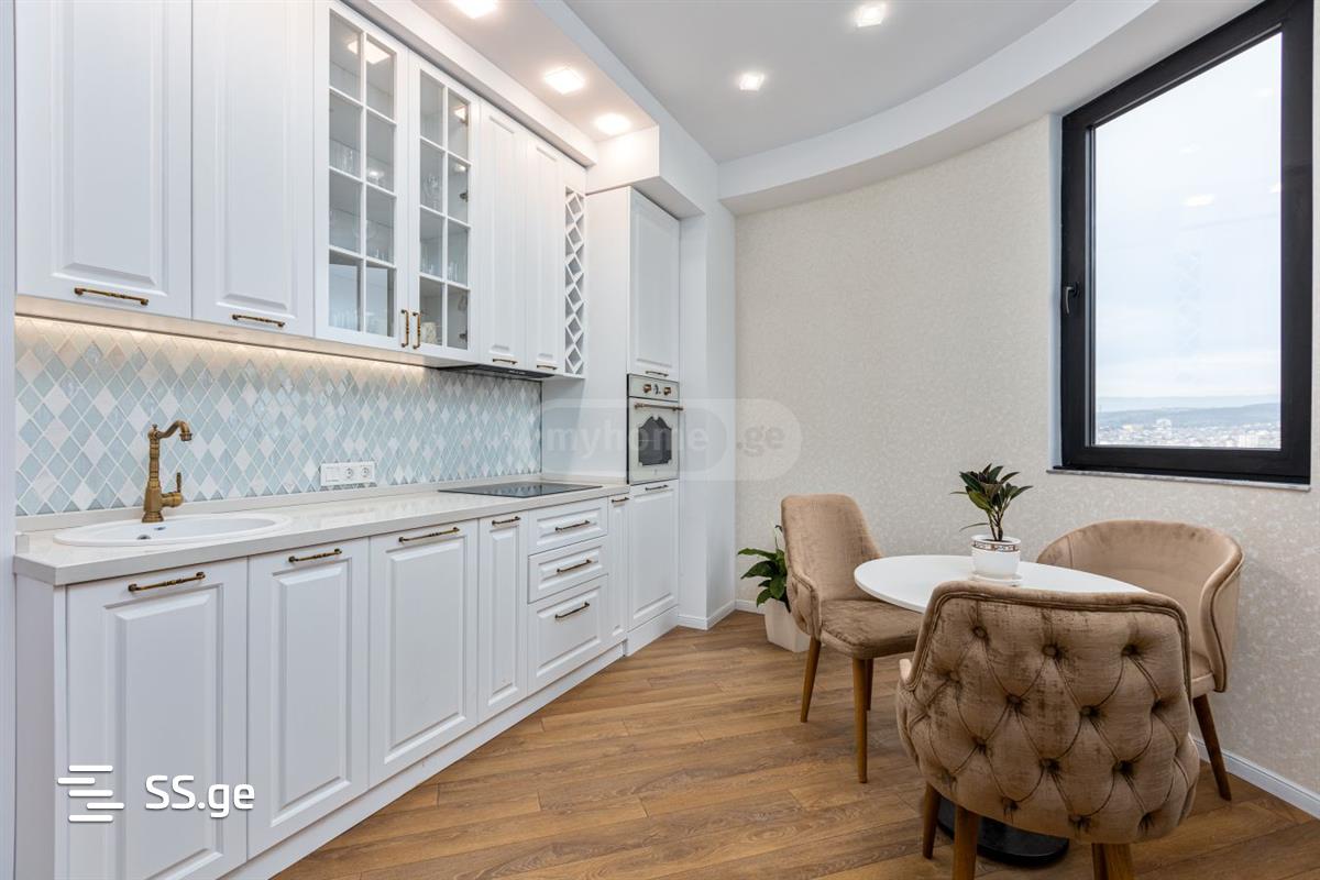 A newly renovated apartment for sale, on Chovelidze street, the apartment is in the best place, Roomsi Gverdze, there are two bedrooms, two bathrooms, a large living room and three balconies with beautiful views.