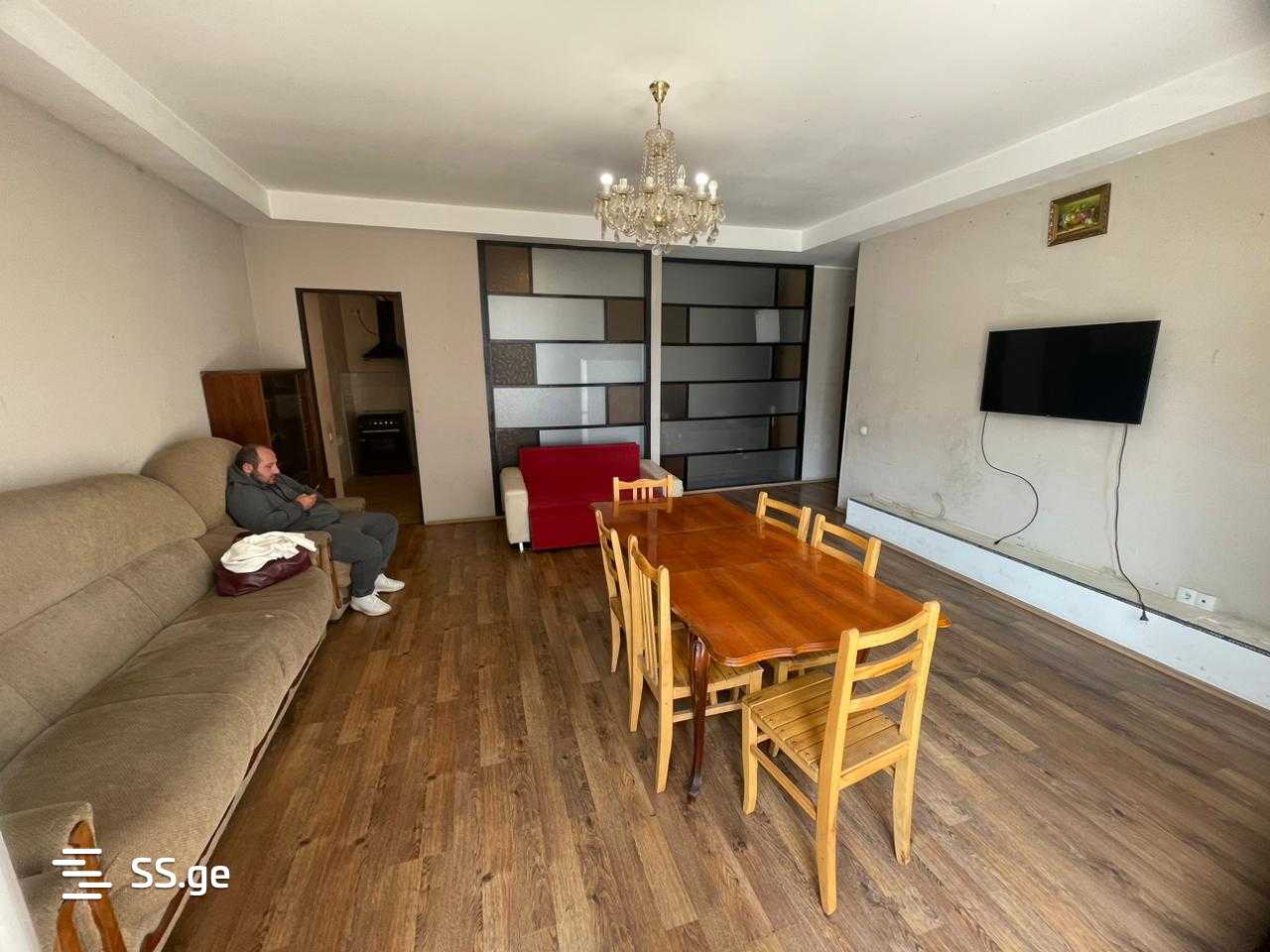 urgently rented 5-room apartment in Digomi, on Rostevani Street. On the 2nd floor of a newly built building. Total area: 110 m2. Newly renovated, separate kitchen, living room, 3 bedrooms, 1 bathroom, and a balcony. Central heating is installed. The apartment is rented out with full furniture and appliances. Price: 600 USD