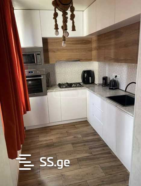 For rent: a 5-room apartment on Avto Varazi Street. The apartment has: 3 independent bedrooms, 1 large living room, a dining room, and a built-in kitchen.