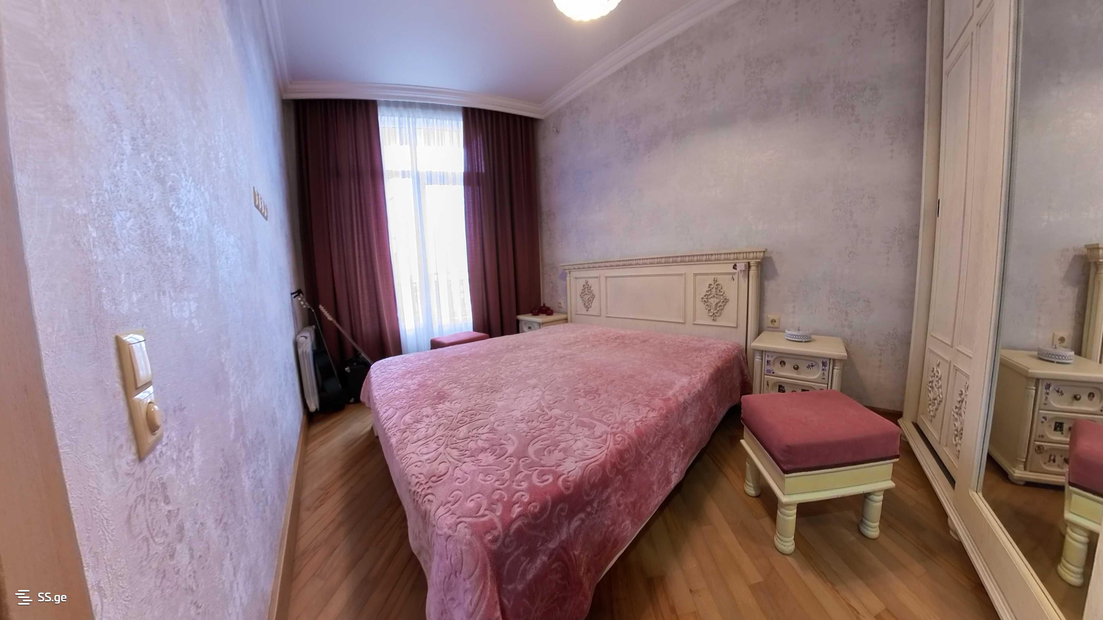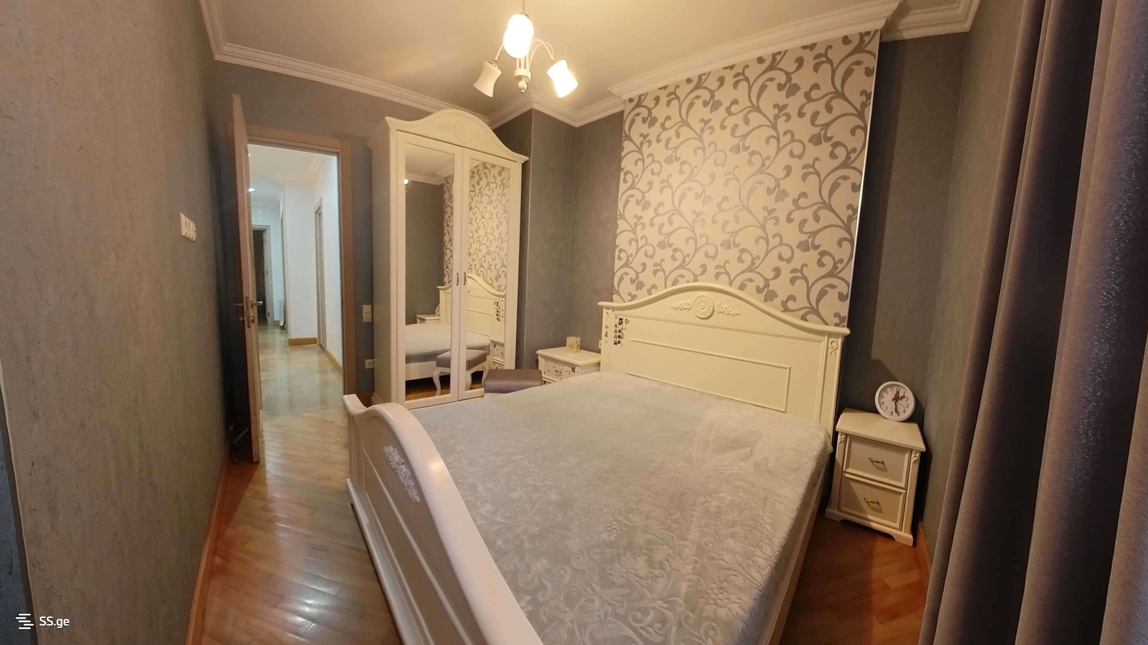 For rent in the city center, near the park, at 45 Gorgiladze Street, a newly built apartment on the 6th floor with an area of 130 sq.m. 3 bedrooms, a dressing room, an office, a separate kitchen, a living room, 2 bathrooms, this is a corner apartment with balconies on both sides.