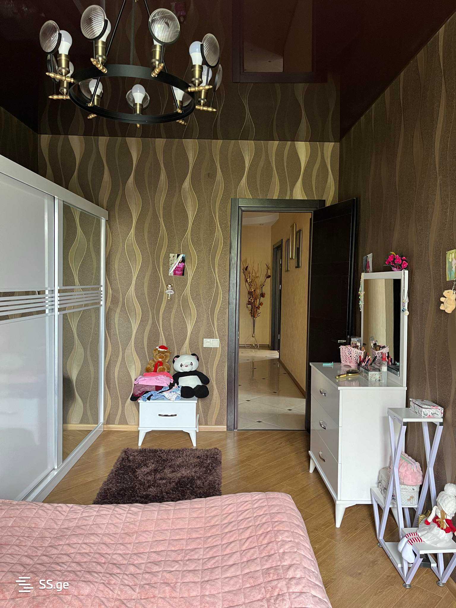 In Gldani, in the 3rd micro-district, at 20 Vladimir Naneishvili Street, a 5-room apartment is for sale, with three bedrooms, three TVs, three air conditioners, mosquito nets on all windows, a Ariston boiler, two bathrooms, the kitchen with built-in appliances (refrigerator, dishwasher, gas stove, oven, microwave) remains, built-in furniture remains!!! That is, I will take out the movable furniture, or if the price increases, I will leave it if the buyer wishes.