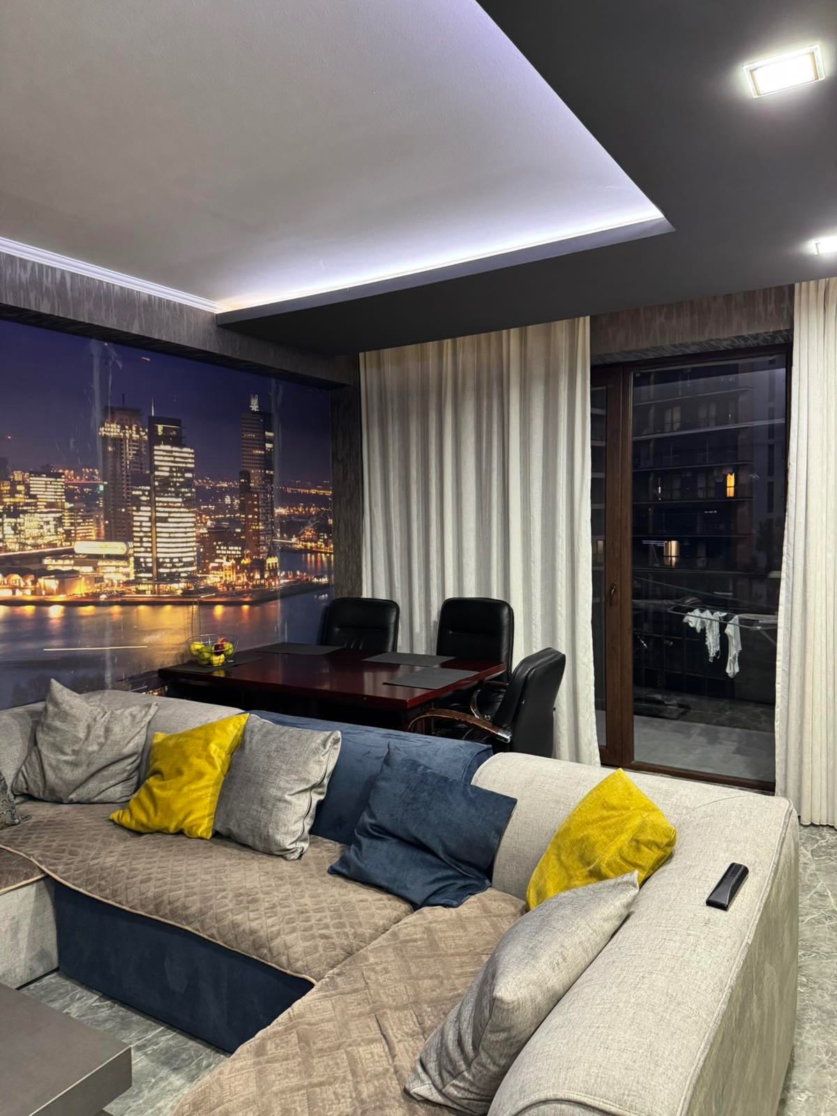 For sale from the owner, the price is negotiable. On Nusubidze street, 4th plateau, K. Kapaneli Street, 8, 10/3 floor, living area 2, 105 sq.m + 13 sq.m apportioned hallway used only by the owner. 5-room apartment, with 4 bedrooms, 2 bathrooms, a spacious apartment equipped with built-in furniture and appliances. Central heating + underfloor heating, for all details please call.