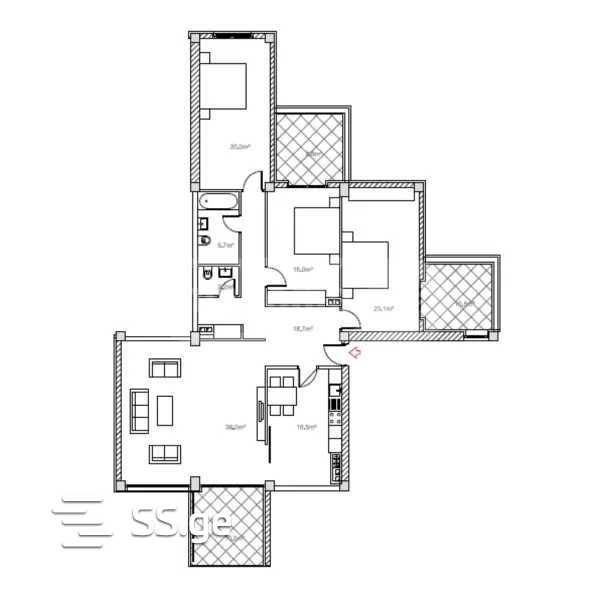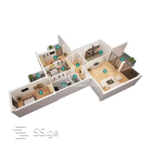For sale is a 5-room apartment, with 3 bedrooms, two bathrooms, in a residential building "Terrace on Kiacheli Street", in a newly built premium quality building. The apartment is for sale in a green frame condition. High-quality aluminum windows and doors "SCHUCO" are installed, electricity is installed, insulation, "ROCKWOOL", elevators "SHINDLER", roofing material "KNAUF", the material for covering terraces and balconies is frost-resistant, of European standard and quality. The floor is covered with techno granite. The project area covers 2329.0 sq.m., the building is 11-storey, with 6 floors facing Kiacheli Street, and the -5th floor terraced towards the right bank of the Mtkvari River.