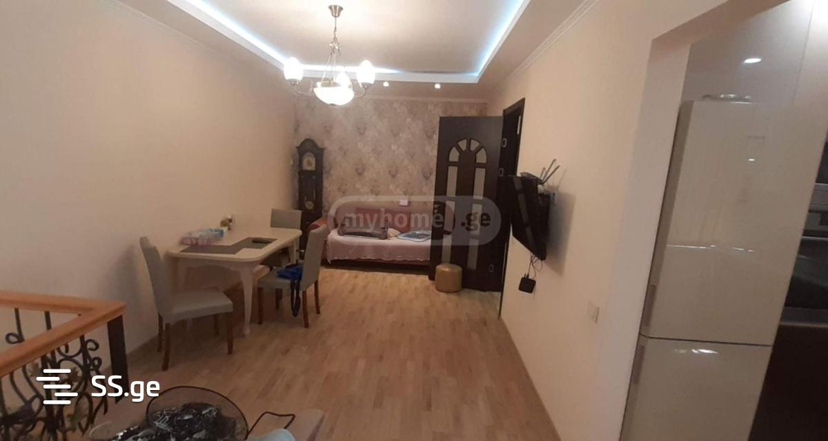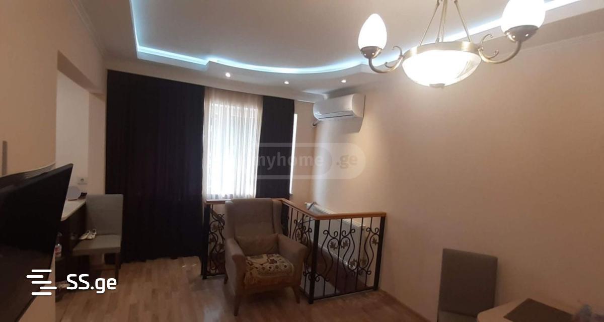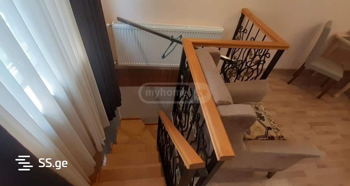 The apartment is equipped with all the necessary equipment and furniture, refrigerator, dishwasher, stove, oven, microwave, washing machine (with automatic drying function), first dishes, etc. There is central heating and air conditioning. The apartment is on 2 floors. The lower floor is a windowed half-basement with a built-in electro-visual fireplace. The apartment has new repairs and high-quality appliances. The apartment is in a very cool and quiet courtyard. 300 100 meters from the Aragveli metro station. 3 minutes on foot. There is a square and a children's stadium in the yard. Access to the lobby is an access system (on a chip).