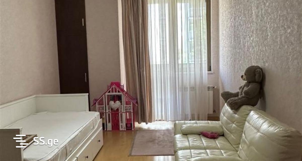 Large apartment for rent in Saburtalo, near the racetrack, axis house, with high ceilings, fireplace, verandas, three master bedrooms, bathroom, isolated kitchen, furniture, full appliances. with two parking spaces. Animals by arrangement. The price is 1700 dollars.