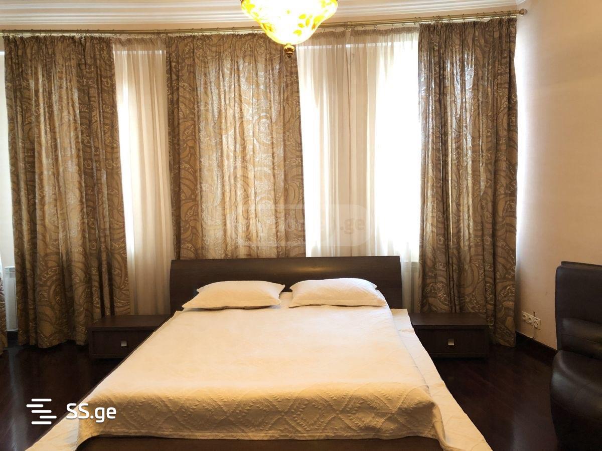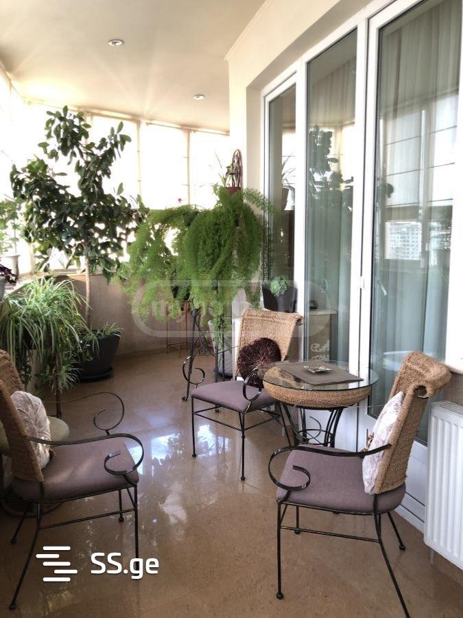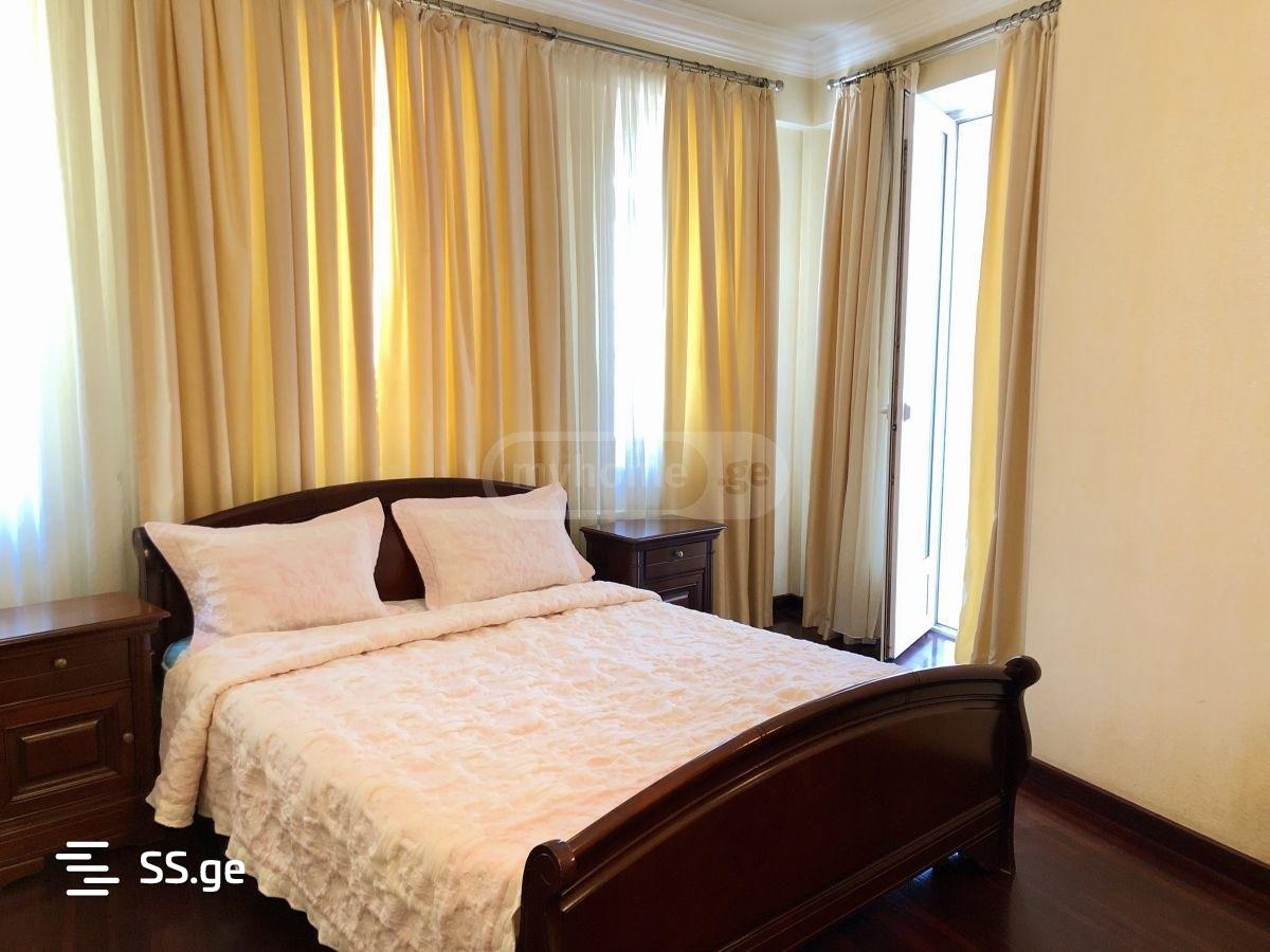 Apartment for rent in Vakeshi, Nino Ramishvili 35, near Mziuri Park (courts), the apartment is well-furnished with a secure and bright garage and parking in the yard. 260 km 10th floor 3 bedrooms 2 bathrooms with jacuzzi 2 showers. 1 isolated kitchen with large living room fireplace 1 wardrobe 3 balcony with winter garden