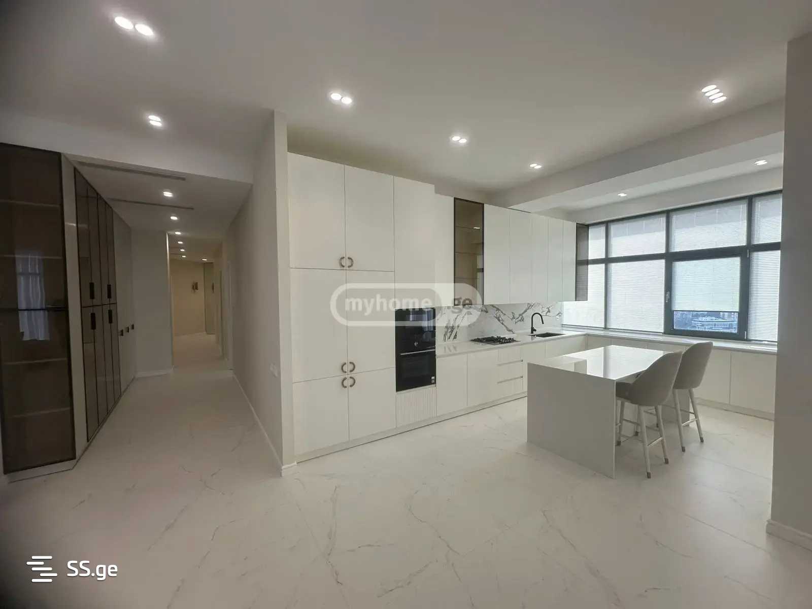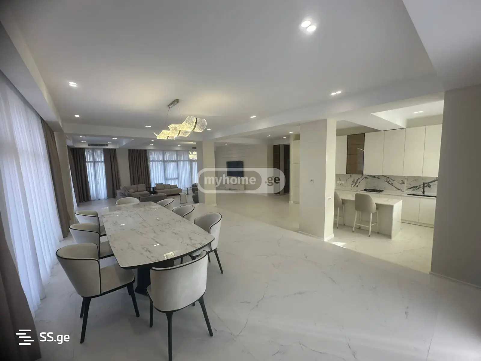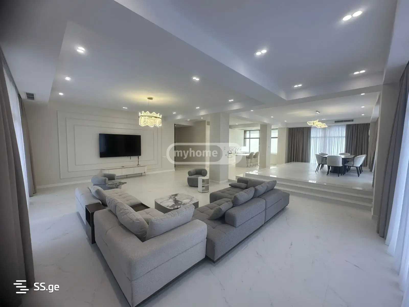A five-room penthouse is for rent in Saburtalo for a period of 1 year, in the Luxury House residential building located at 13 Merab Aleksidze Street. The apartment is equipped with furniture and household appliances. The apartment has a fairly large veranda with a great view. 2 months advance payment.