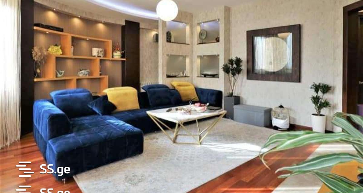 Apartment for rent in Saburtalo, cozy and bright, in a newly built 6-storey terrace on Ikaltos Gora, in a building, on the 2nd floor, with 6 rooms, two-car garage, remote control door, large veranda, balconies, 4 separate bedrooms, 2 separate large living rooms, separate kitchen, With 2 bathrooms, one of which has a jacuzzi, it also has a separate dressing room, with the highest quality furniture and appliances.