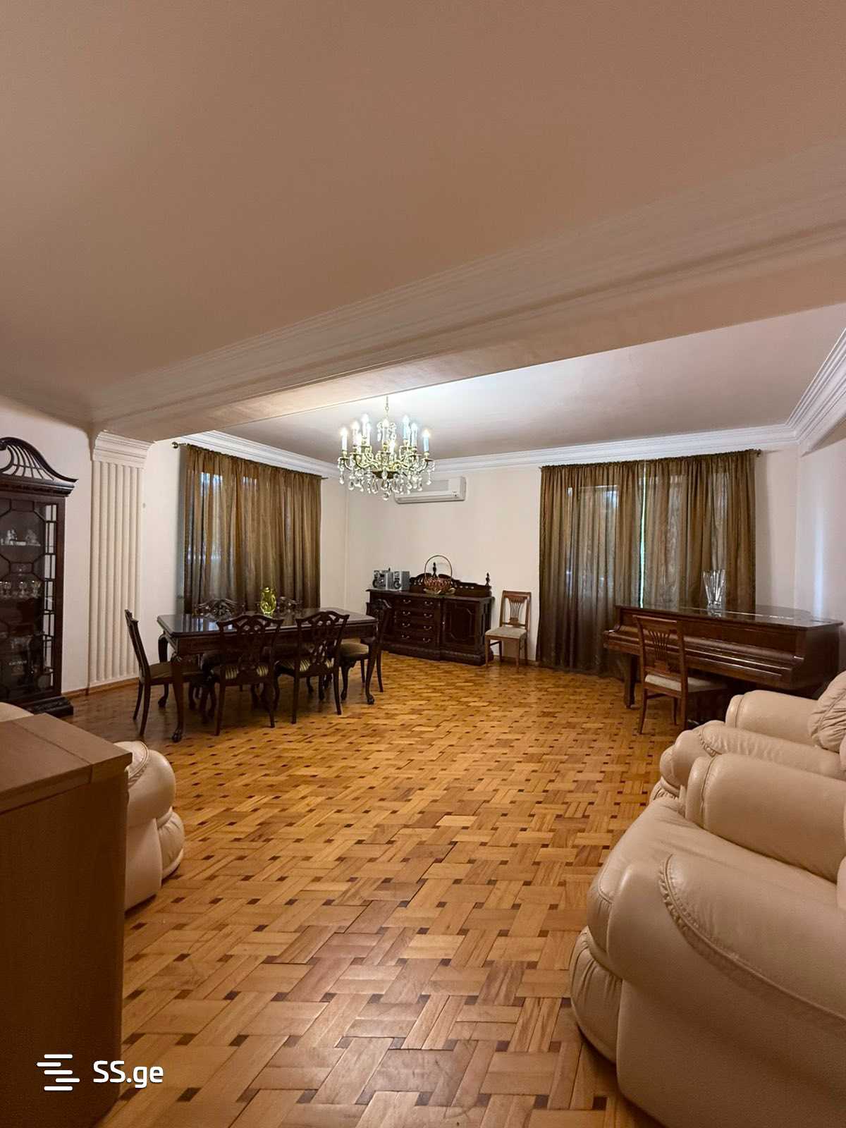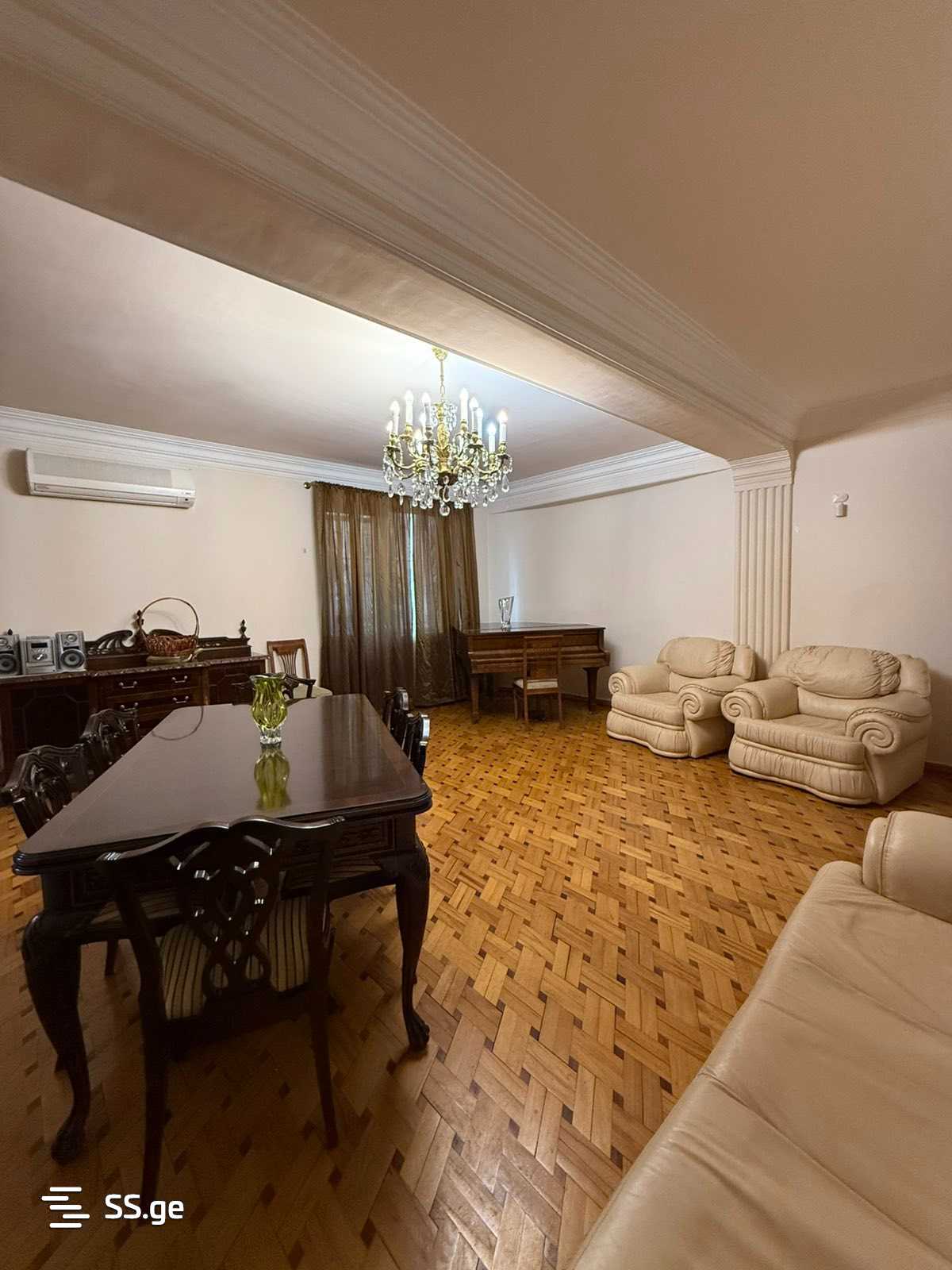 Location is one of the best places in the city – the heart of Saburtalo, Sairme Street. The apartment is located on the second floor of a 9-story Czech building and consists of 7 rooms, including 5 bedrooms (one of which is currently arranged as an office), 2 bathrooms, a separate kitchen, and a spacious living room.