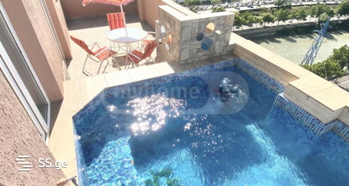 Penthouse for rent with a pool on the left bank of Mtkvari with views over Tbilisi.