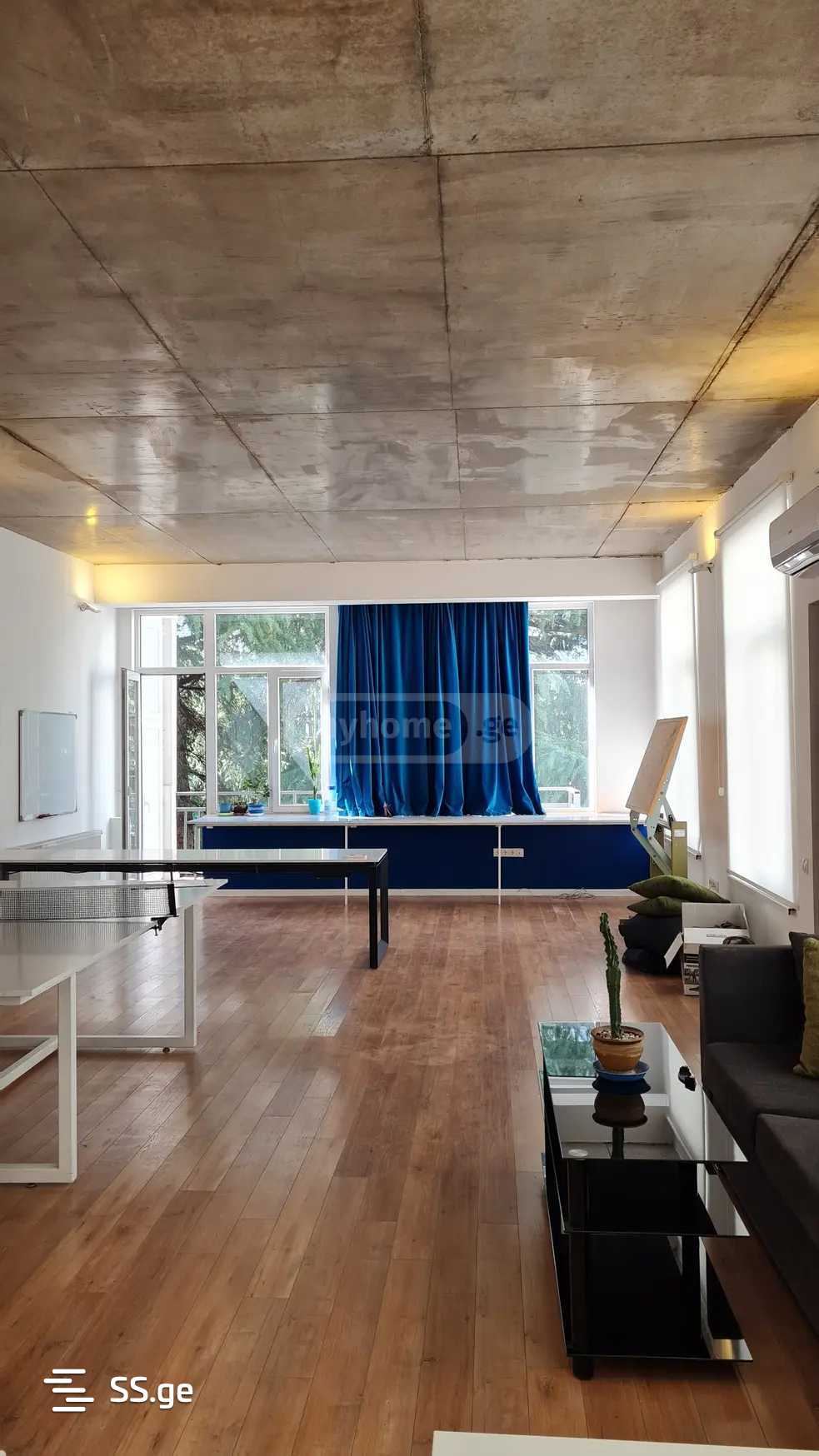 A newly renovated commercial space is for rent in the Digomi massif, the space is of studio type, meaning it is one whole open space, divided by a restroom and a storage room. It is equipped with motion detectors for security, surveillance cameras at the entrance, heating, and also cooling systems.
