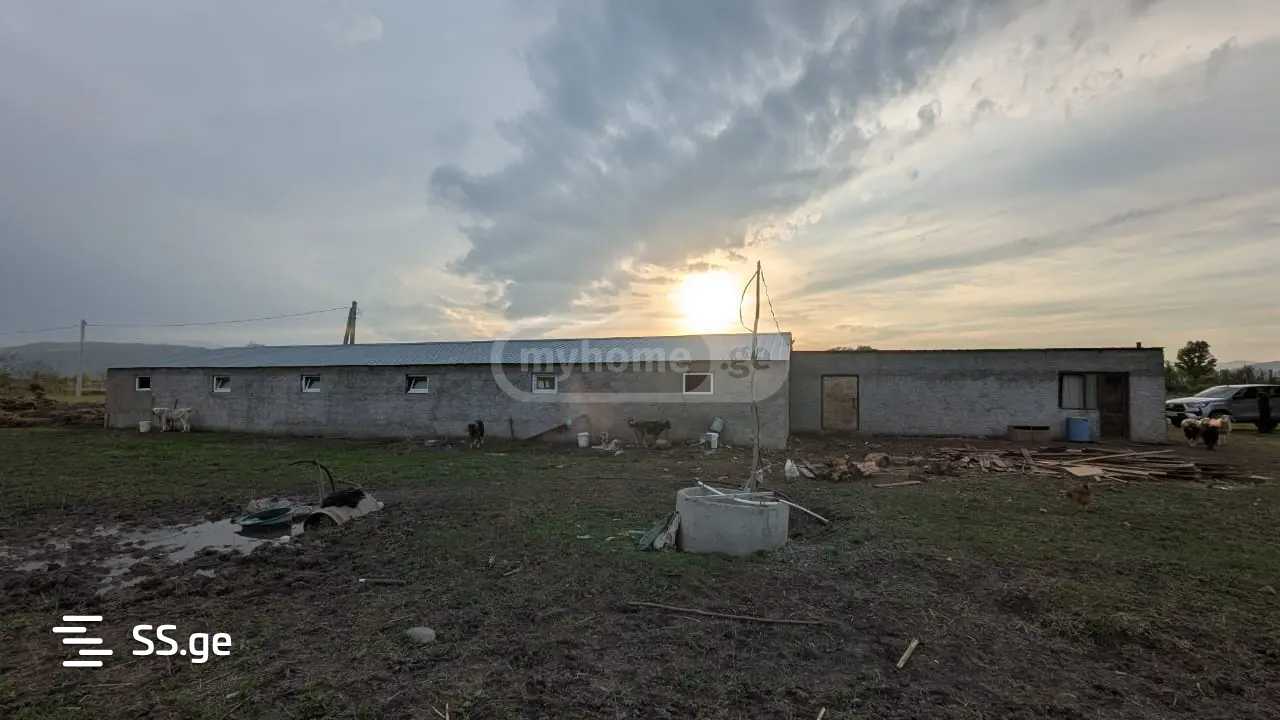A functioning farm is available for rent in Mukhrani, currently rented for 1500 lari, will be available in May. The area has three-phase electricity, water, and free pastures (meadows). The building is 400 square meters, with 300 square meters being the farm. It is a 10-minute drive from the main road. Sale is also possible for $57,000, and the price can be negotiated with a serious buyer.