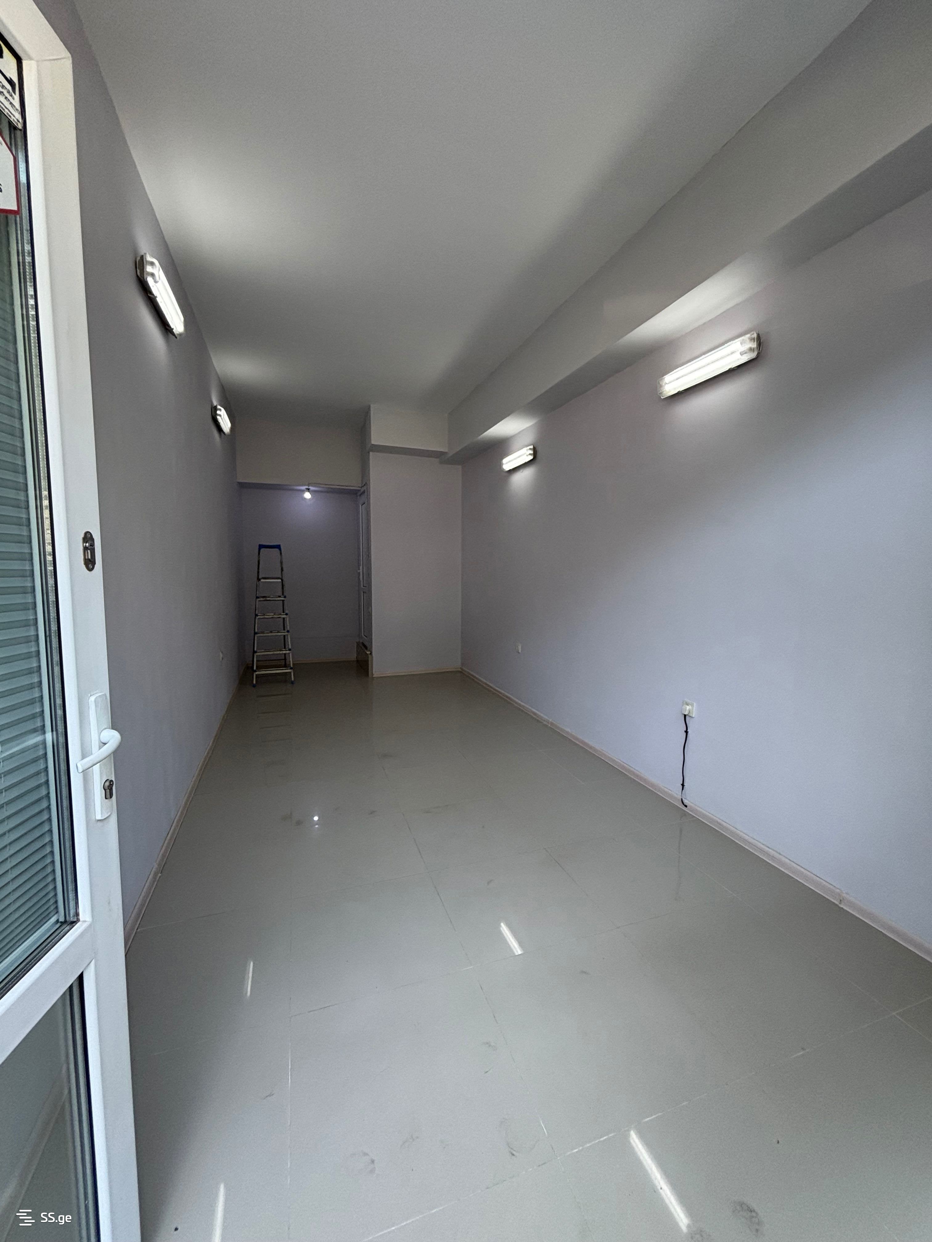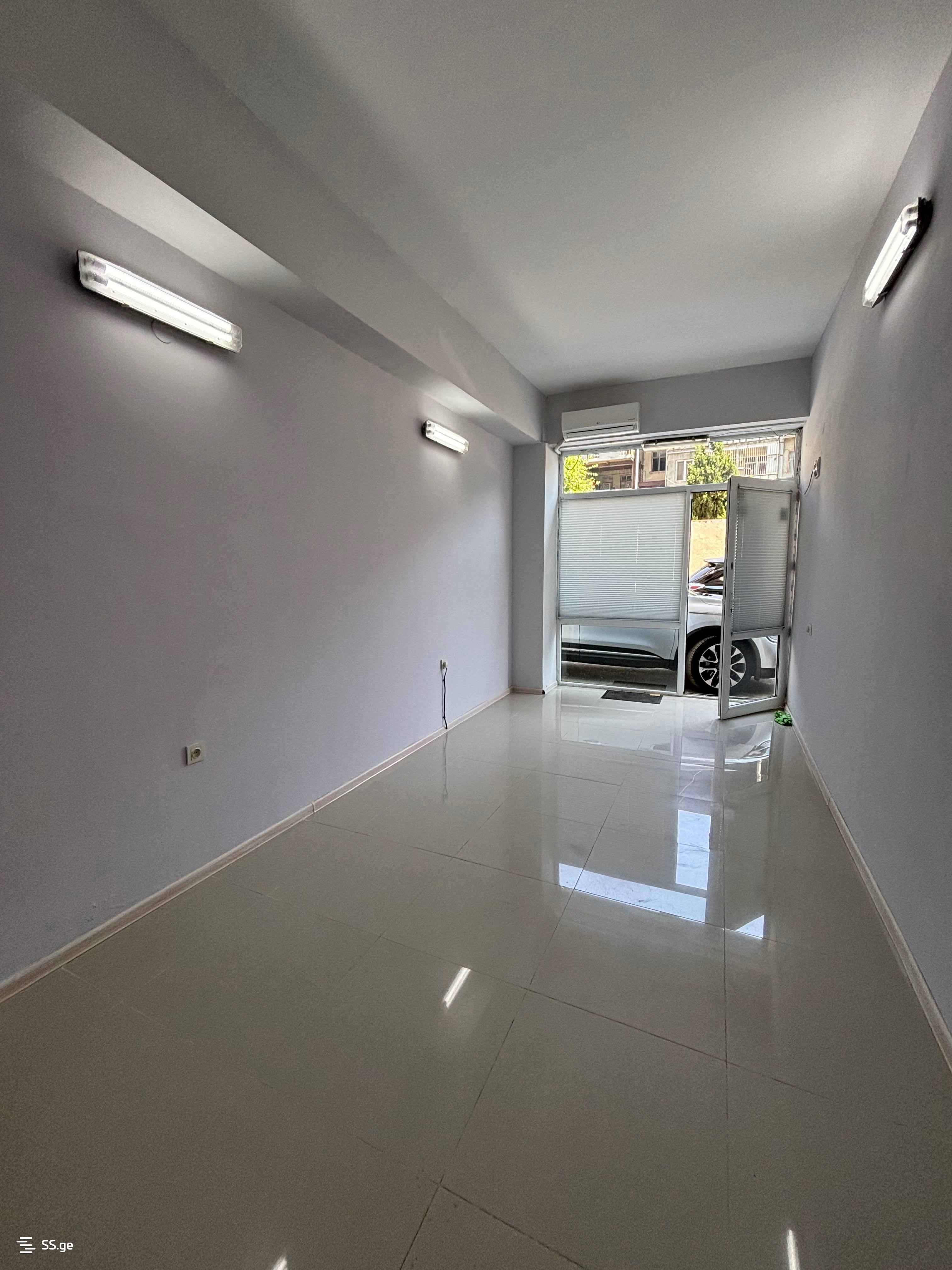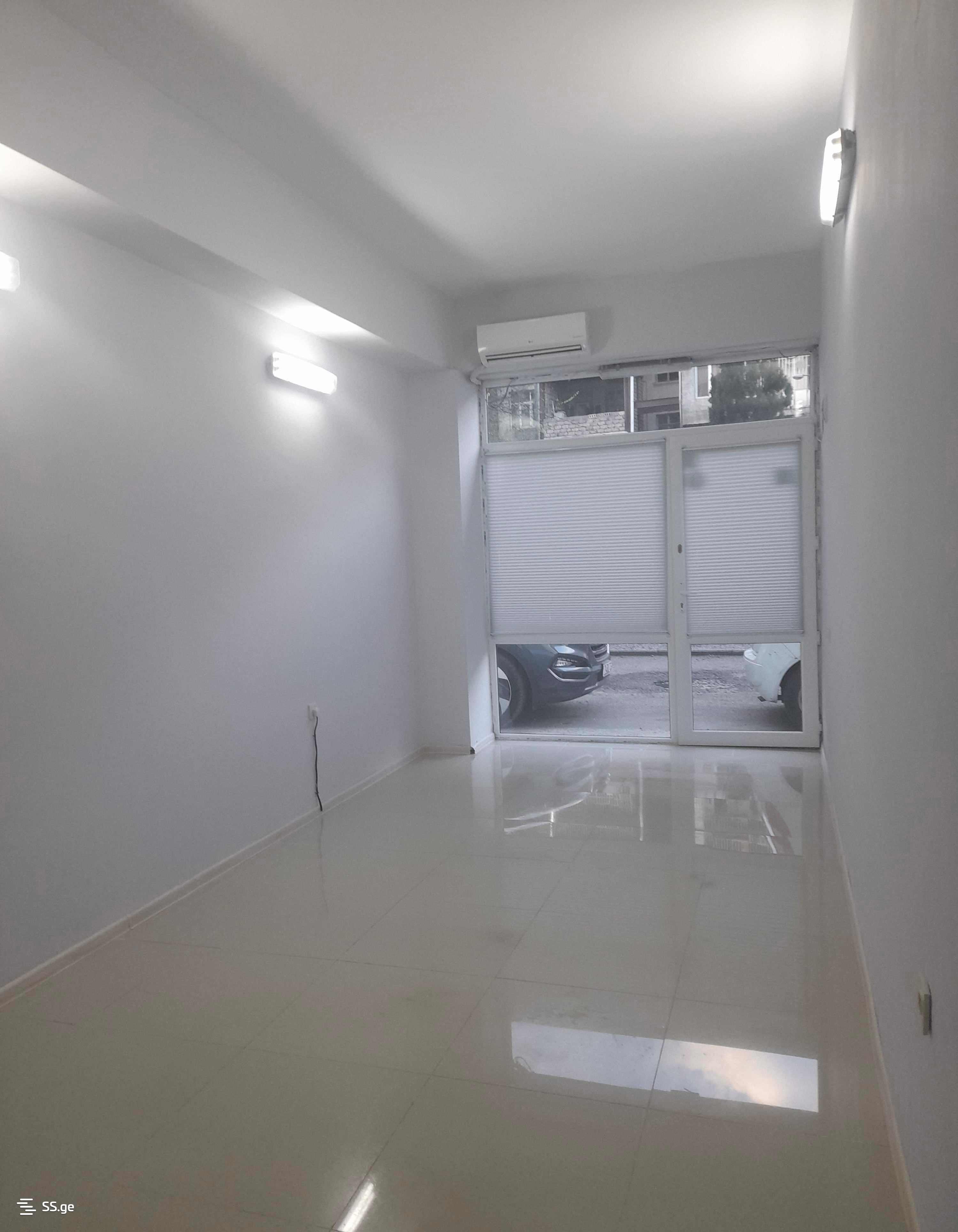 For rent, a 21 square meter glass commercial space on Kalandadze Street (near Pekini Street) with a bathroom and air conditioning, including 1 parking space. It is a good option for office, storage, and other activities. The space is not on the road side; it is in the yard. Price 900 Lari without utilities.