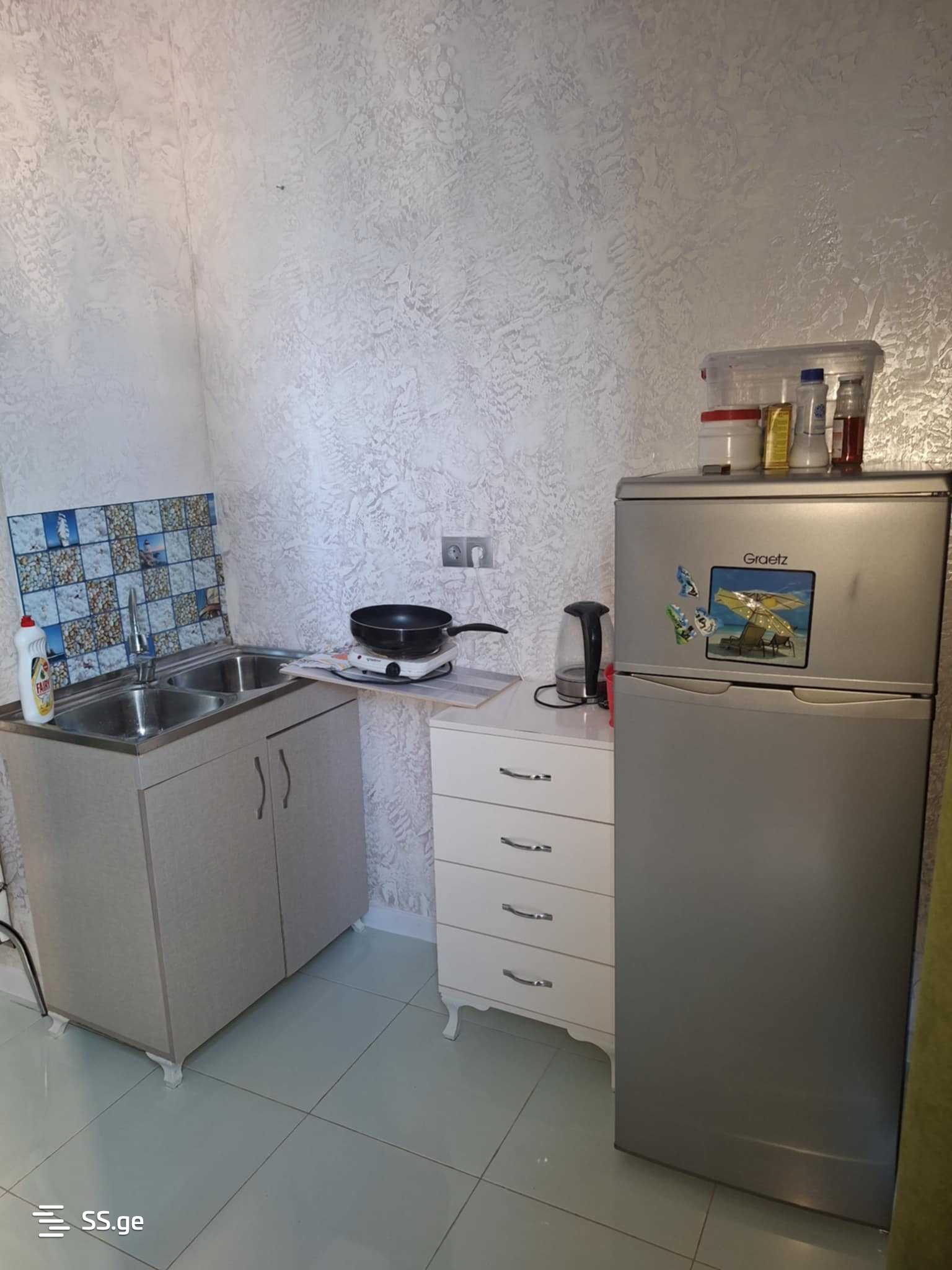 A hotel room is available for daily rent in Gonio, by the sea, equipped with household items and inventory. There is a free pool on the ground floor of the hotel, and a trampoline for children.