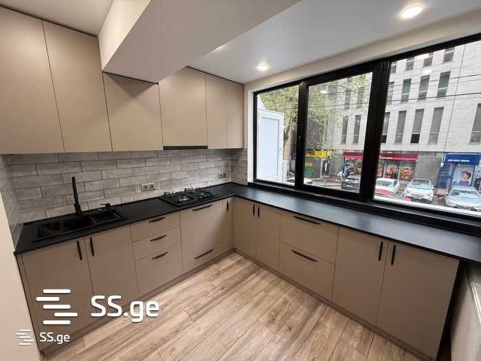 Office space. Newly renovated, unoccupied, 3-room. One room has a ventilation system that brings in fresh air. The terrace overlooks Gamarjveba Street. The location is very good for both living and office use.