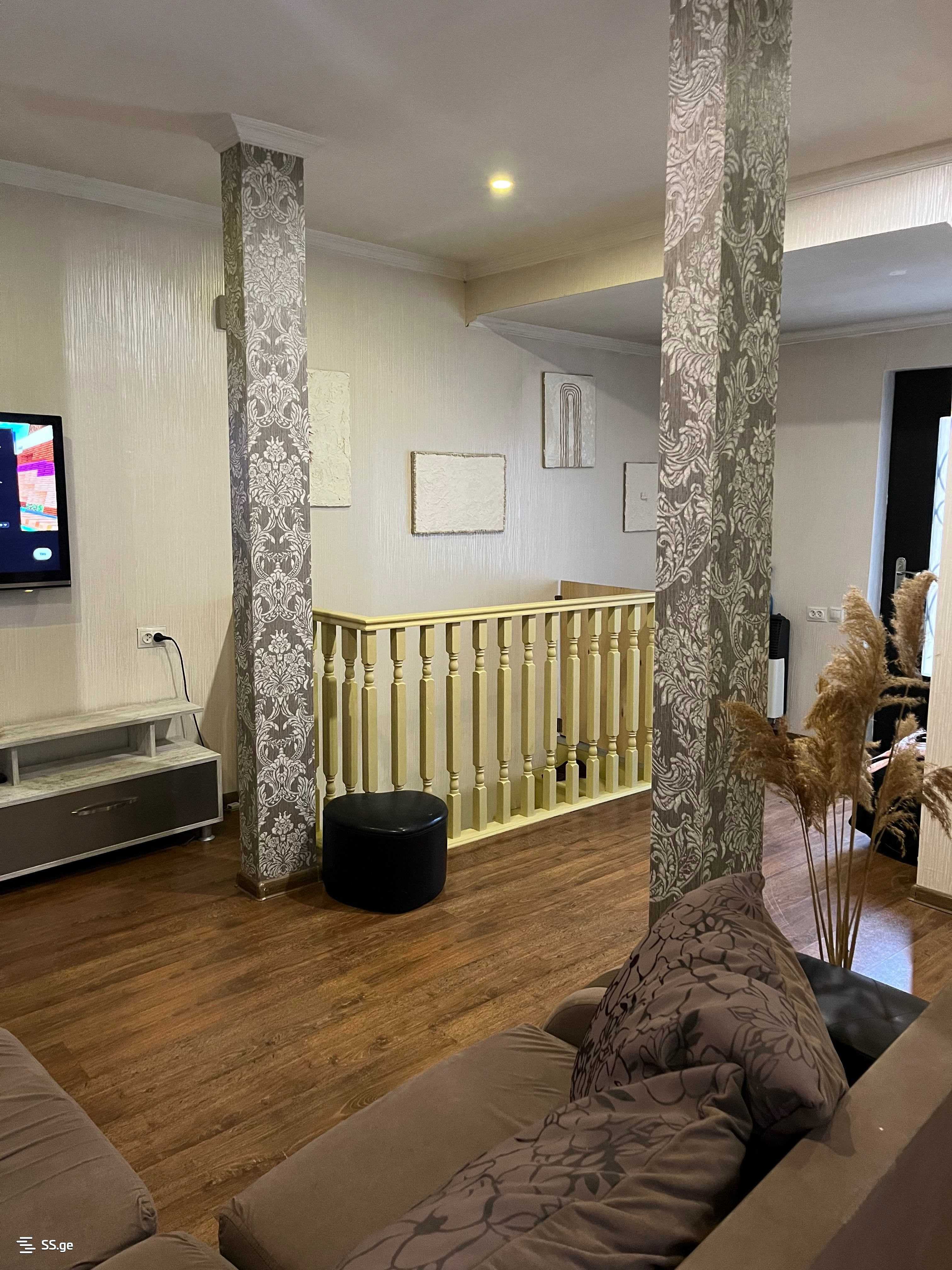 A duplex apartment for rent, which is also used for commercial space. The building has two independent iron doors.