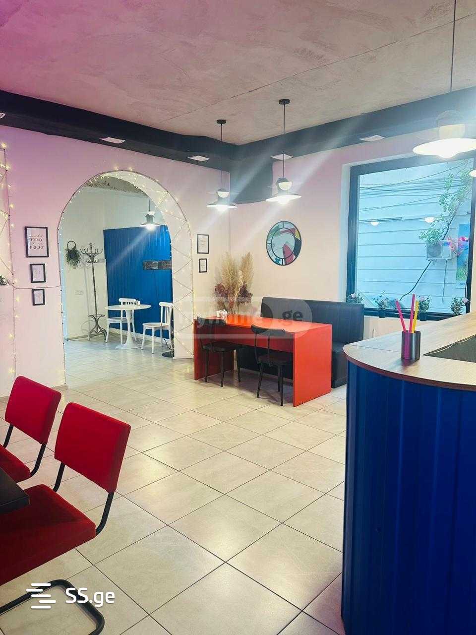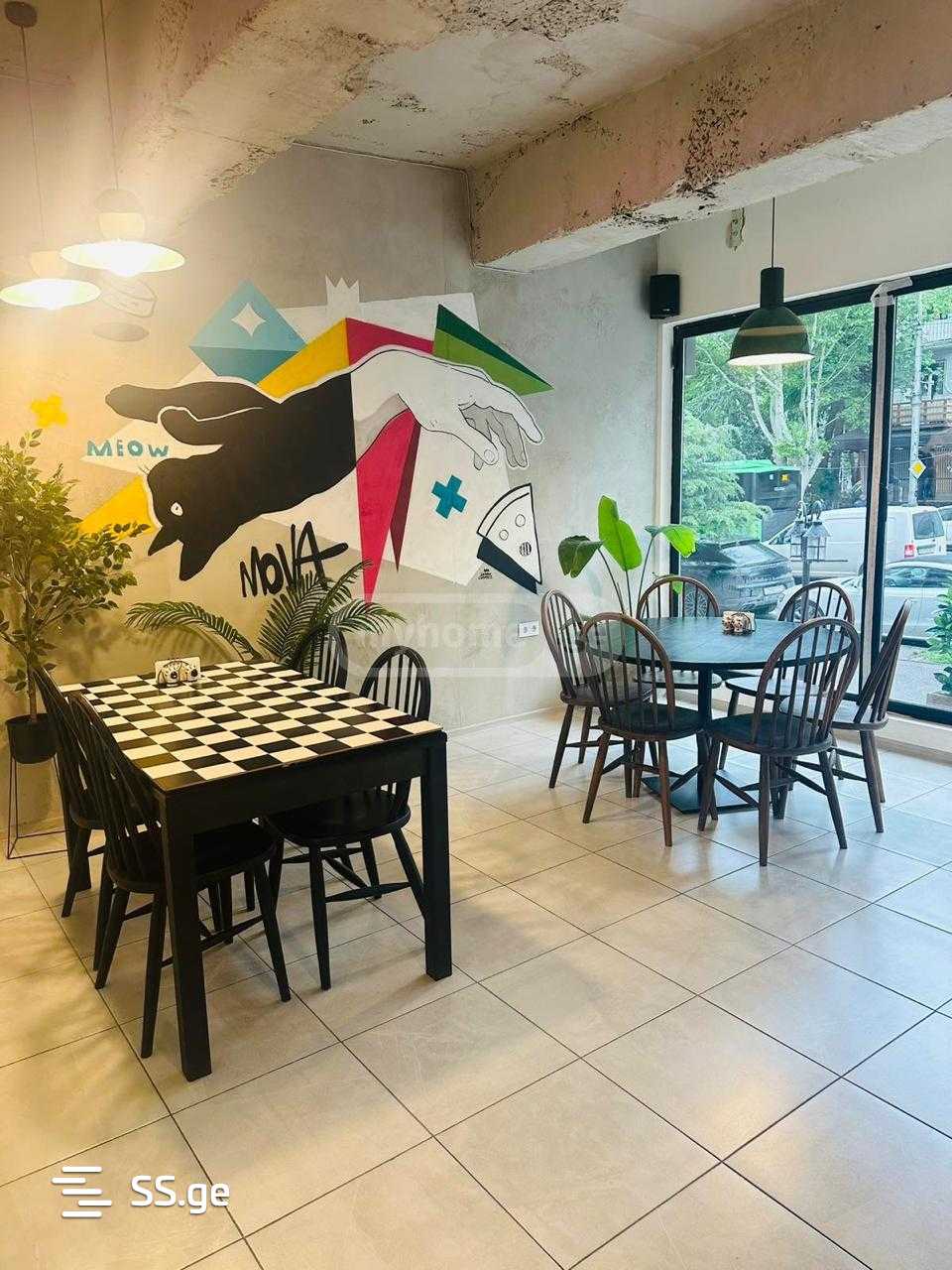 Corner commercial space for rent on Alexander Kazbegi Avenue (near Beijing) 125 sq.m. with a large stained glass window and permission to set up 5 tables outside. Renovated, with central heating, air conditioning, ventilation system, suitable for any catering facility