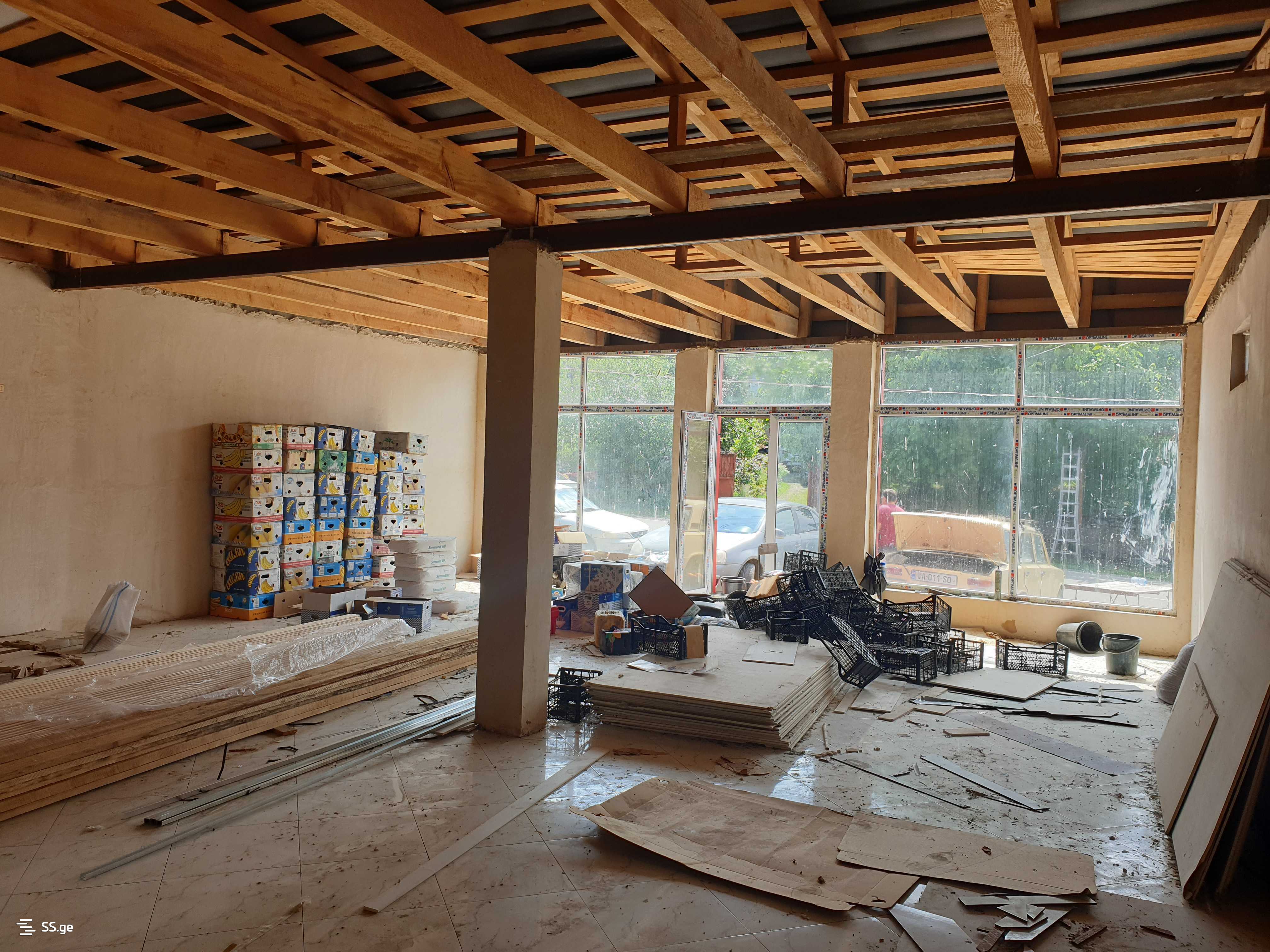 #42Z Renovated commercial space for rent in Telavi district, in the center of Vanti village, on the side of the central road. consists of the main hall, which is 130 sq.m. and the same volume (130 sq.m.) of warehouse space. The area is provided with electricity and water. Natural gas and internet are easily available. The bathroom is under construction and will be completed soon. Ideal for various types of commercial activities. Total area: 260 sq.m. Price: 1000 GEL
