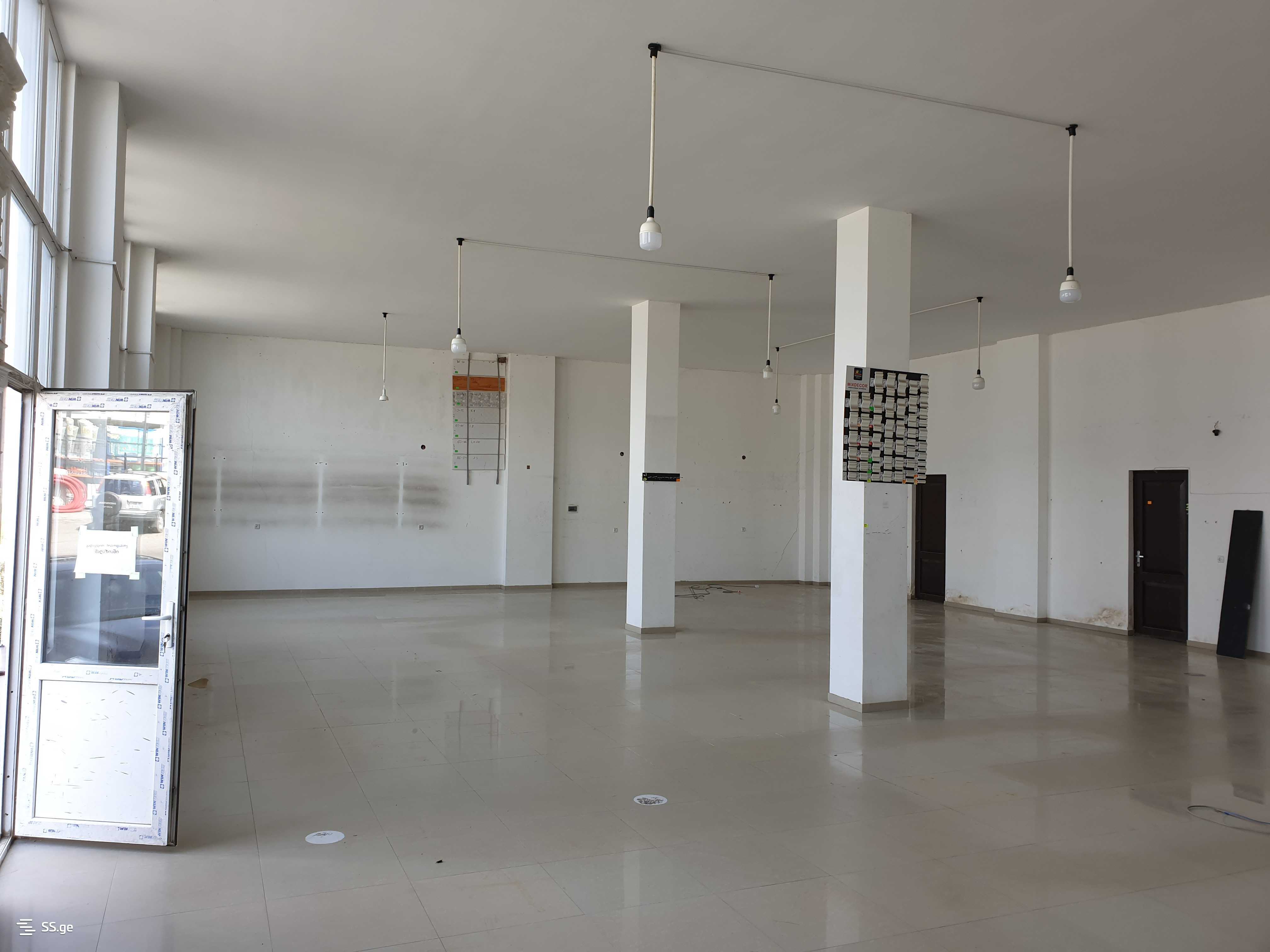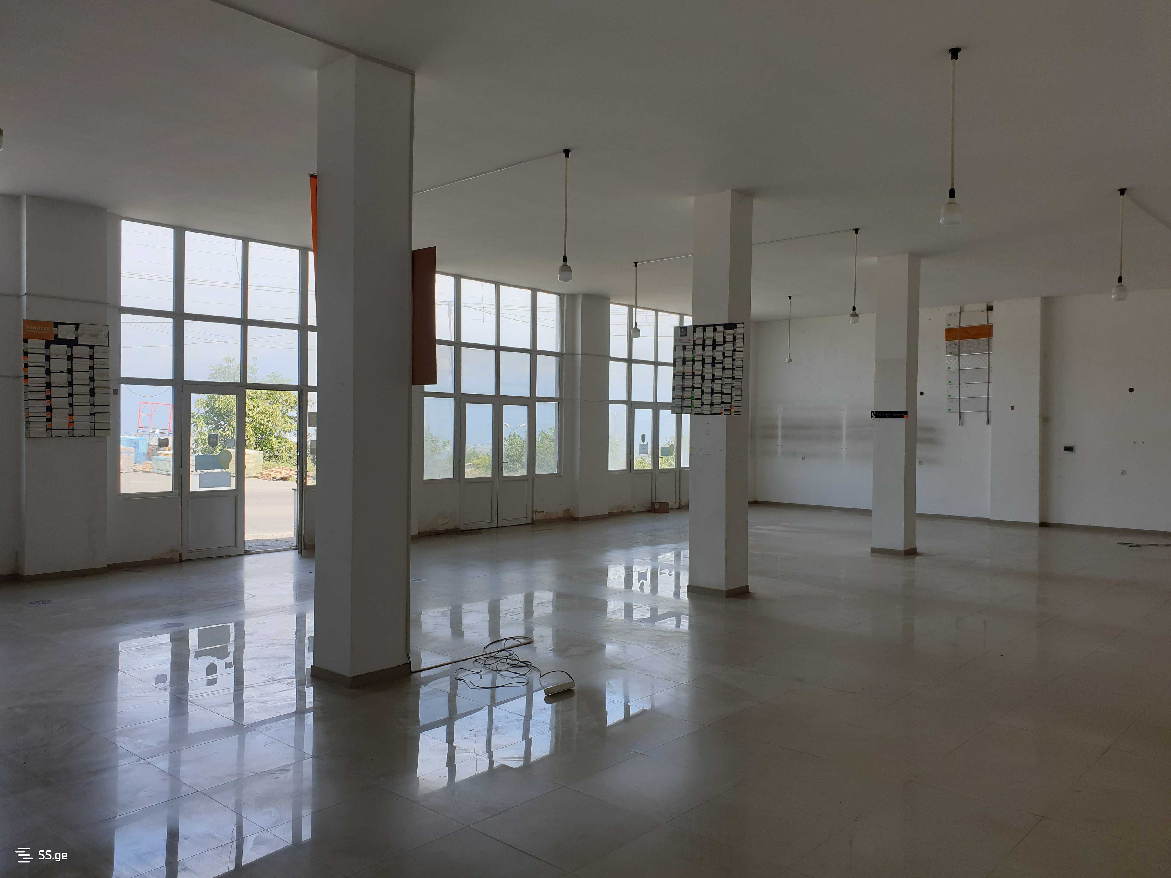 For rent is a two-story universal commercial building located at the exit of Telavi, close to the circular area of Vardisubani. The location is very busy and bustling, where various commercial/trade facilities are concentrated. First floor: two spaces are available for rent. One space is 300 square meters, while the other is 80 square meters. Second floor: a 470 square meter area, a well-renovated banquet hall accommodating 500 people, equipped with all necessary inventory. A high-level heating/cooling system is installed. There is a large kitchen, a refrigerator, and a barbecue room. There are also dishes available. It has an isolated entrance. Renting the space for other purposes is possible as well. Both floors are equipped with utilities and restrooms. The building has a large yard at the back. The price is negotiable.