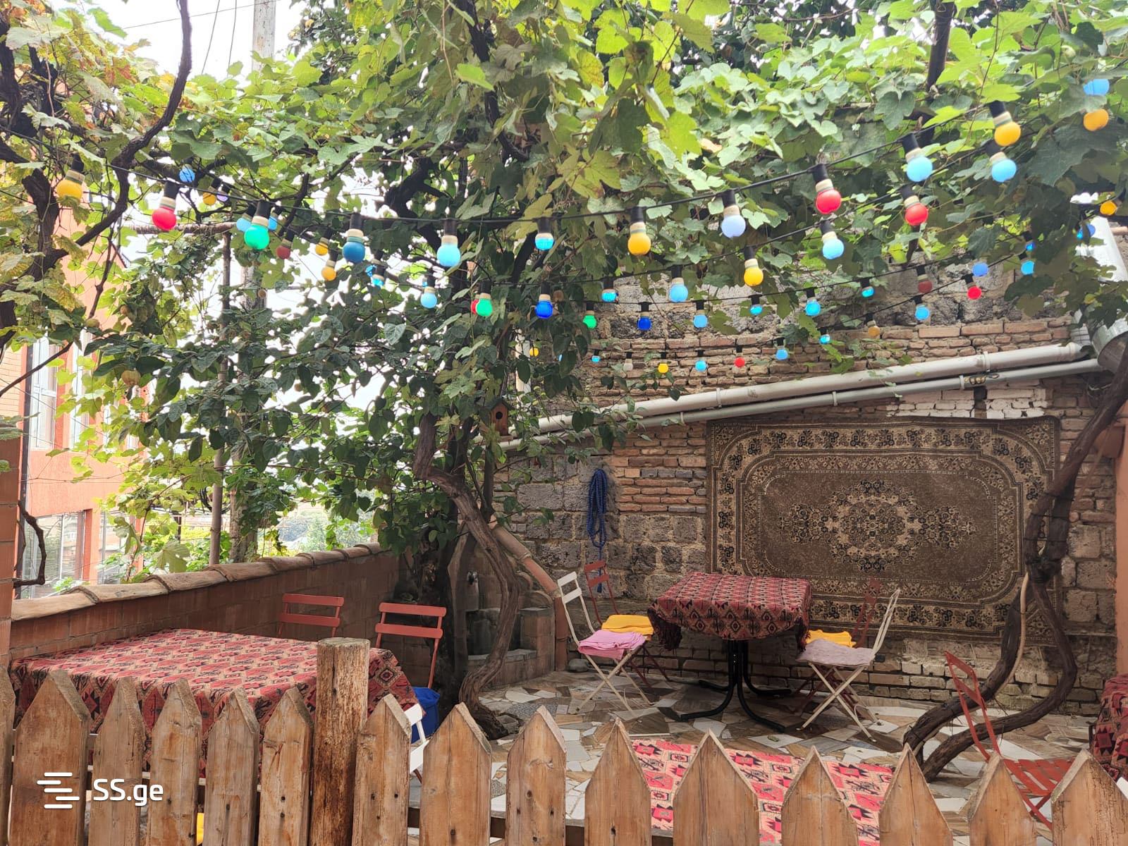 Urgent! 350 meters from Rustaveli metro station, at the foot of Tvereli church, house/commercial space for sale. Georgian restaurant on the first floor, hotel with 5 rooms on the second floor.