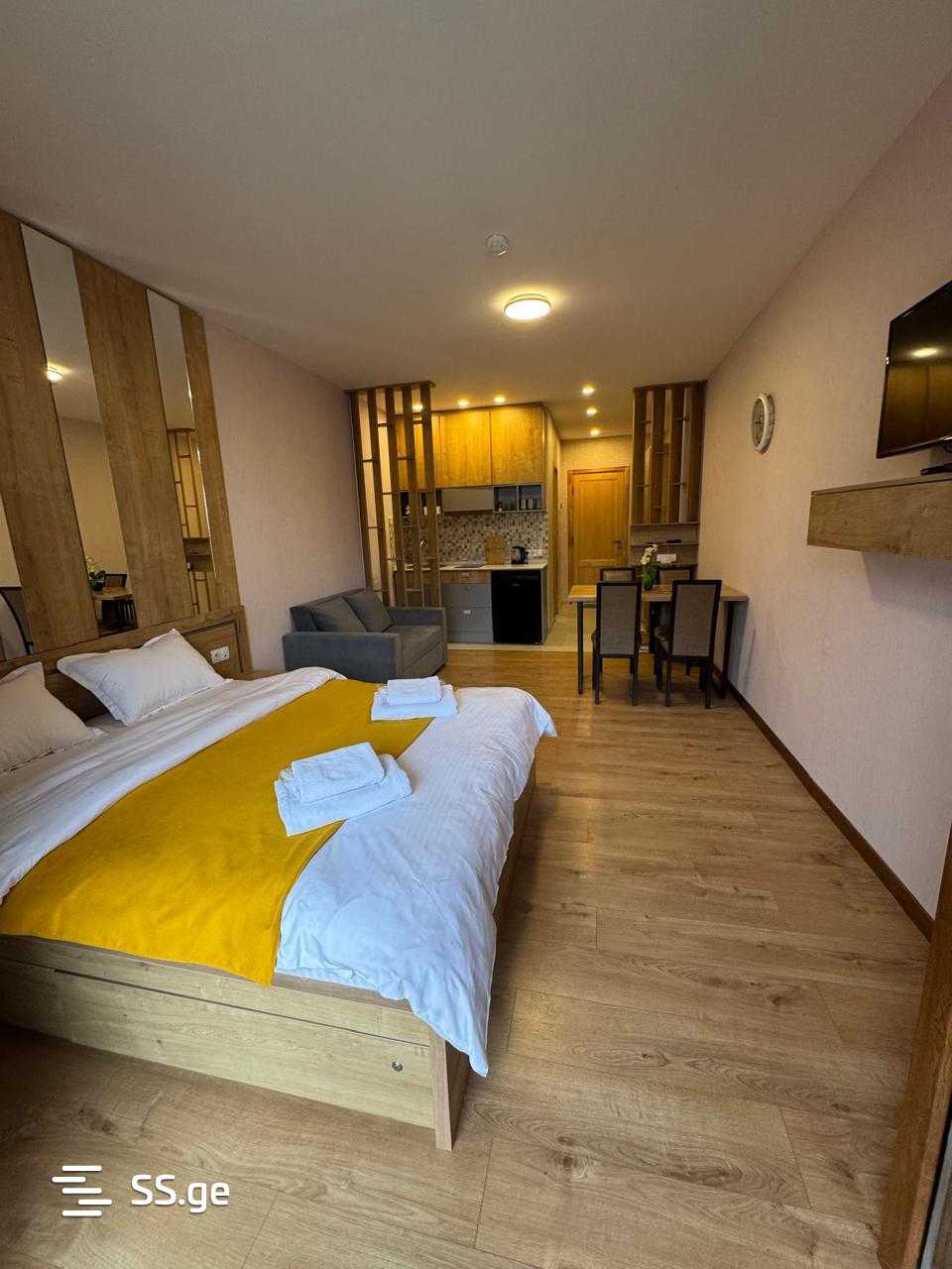 The Valley bakuriani aparthotel is located in the area of Didveli, 150 meters from the gondola lift. The complex's infrastructure includes: 24-hour security. The room features: free WIFI internet, a television, a washing machine, personal hygiene supplies, bedding, a fully equipped kitchen, and a balcony with a beautiful view. There is 1 room with a main bed (double) and a pull-out sofa; the room can accommodate 2-3 people. The hotel room is located on the 4th floor.