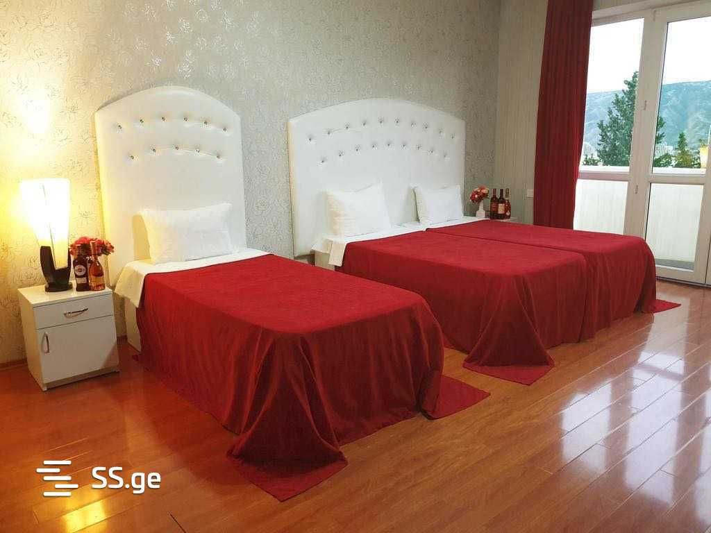 A 4-story (515 sq.m.) 8-room hotel is for rent in Tbilisi. Suitable for office and other activities. Location, Isani Gujarat st. The hotel is fully equipped with all necessary equipment, furniture and appliances. has its own parking space. Central heating, exhaust and condensation system, natural gas, internet and cable TV are installed. All communications are fine. It has a large isolated kitchen, a large reception area (RECEPTION). The hotel has a very nice yard and balconies with beautiful views of the city. 2 km from Freedom Square, in a very convenient and quiet place.