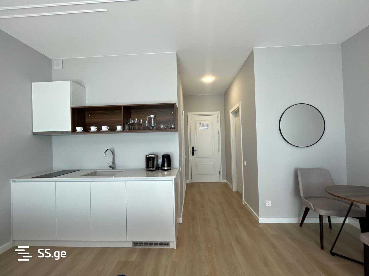 A hotel room is for sale in the first lane in the elite complex of Steps Batumi, on a high floor with a beautiful sea view, the apartment is ready for living.