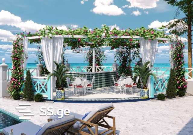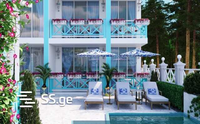 550 sq.m. black frame hotel for sale in Grioleti, with 11 rooms and two restaurants. Non-agricultural land of 333 m². Situated on first line of the sea with access to the beach. The hotel is sold commissioned with erected facade walls of the building perimeter, with completed facade works (plastering of the facade and painting of the external walls and slopes), with installed balcony railings, entrance group railings, with installed windows, an entrance door and a door to the terrace, with communications brought into this house, namely electricity 10 kW, gas (will be supplied from outside without installing a boiler and other heating equipment), non-central water supply (one pipe is brought into the house on the first floor from the well) and sewerage (one pipe is brought on the first floor from the septic tank), on the terrace there is a slope with the first layer of waterproofing, with traps for collecting rainwater, without internal walls, without finishing, without furniture and equipment, without internal communications, without landscaping, without a pool and without a fence enclosing the territory. The hotel is located near the Paragraph Hotel in Grigoleti. Tel: 597222900, 597032299 Slava