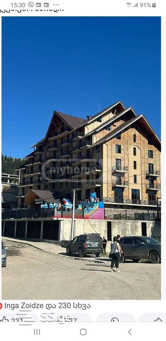 For sale is a hotel with 104 rooms in the Goderdzi resort, it has one closed garage inside the building, one closed garage under the yard, and one open in the yard.
