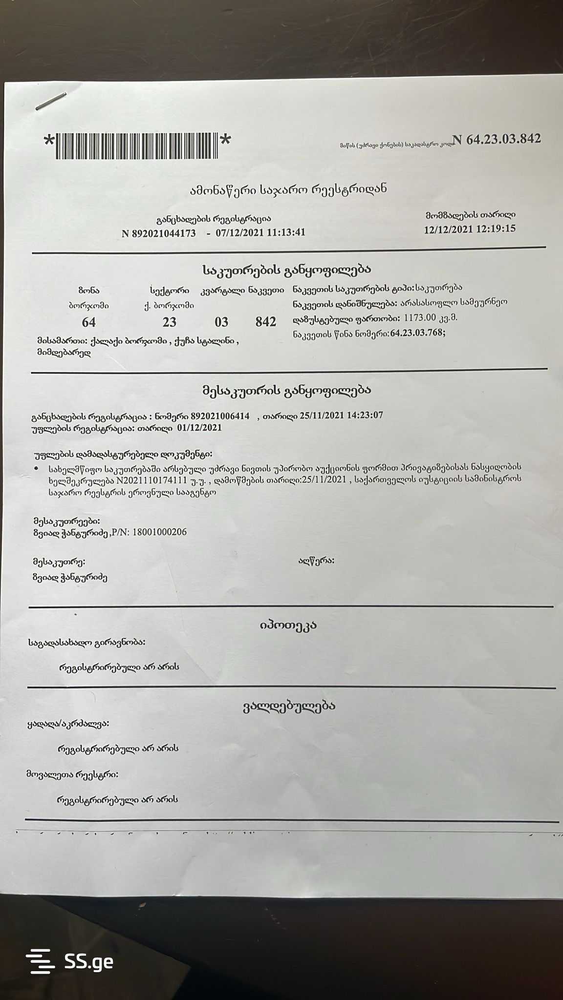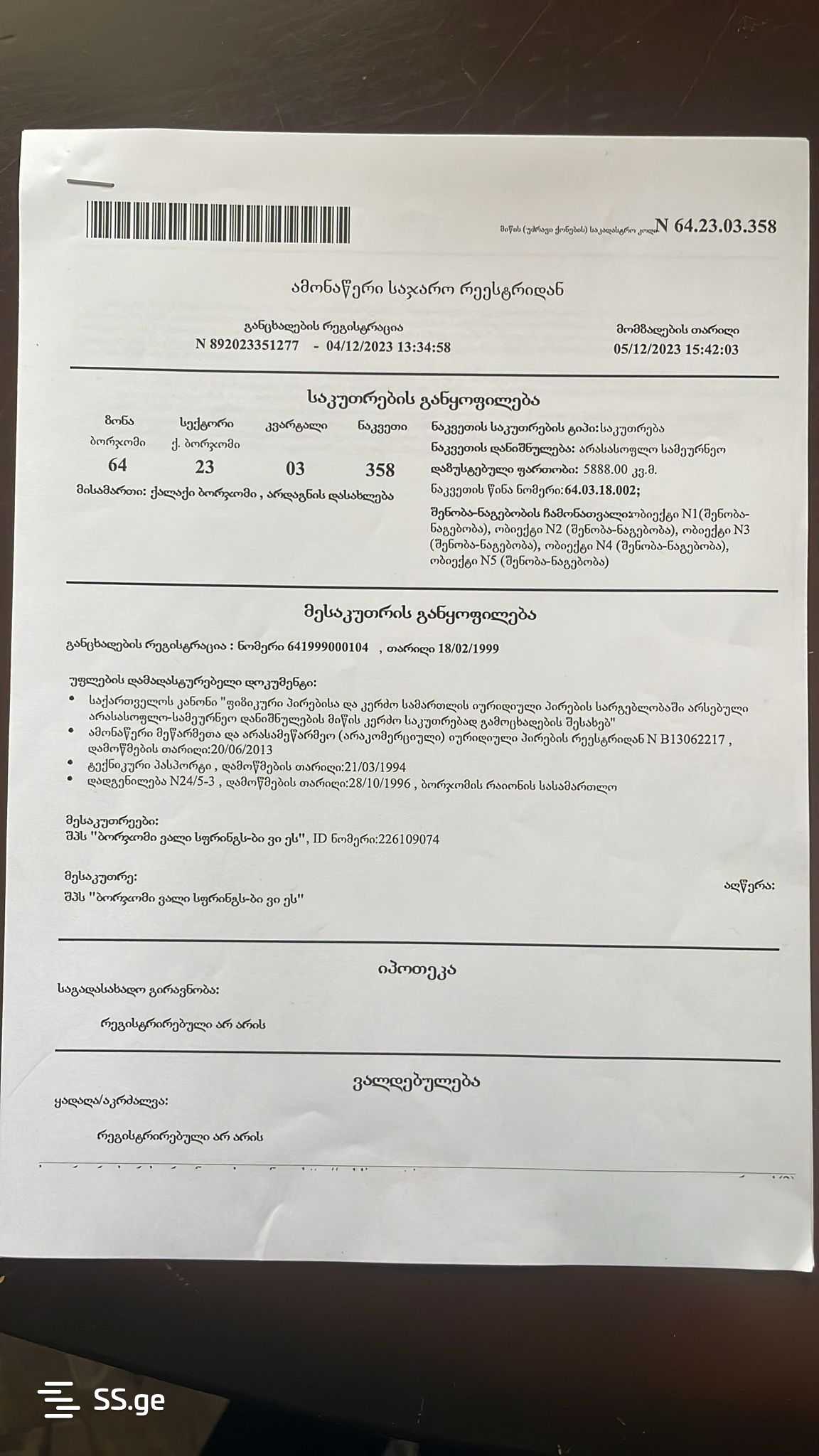 In Borjomi, in the village of Ardagani, on Tori Street, with a total area of 7061 (5888 & 1173) square meters. It is located in a very good place, approximately 8 kilometers from the center of Borjomi and directly on Tori Street, with beautiful views of the mountains and the Gujarali River. Ideal for both industrial and residential development. All utility connections are available, such as private electricity, sewage, gas, and internet, pre-arranged. Note: the price includes a 2580 m2 production hall with a height of 7 m. If you are interested, we can negotiate the price.