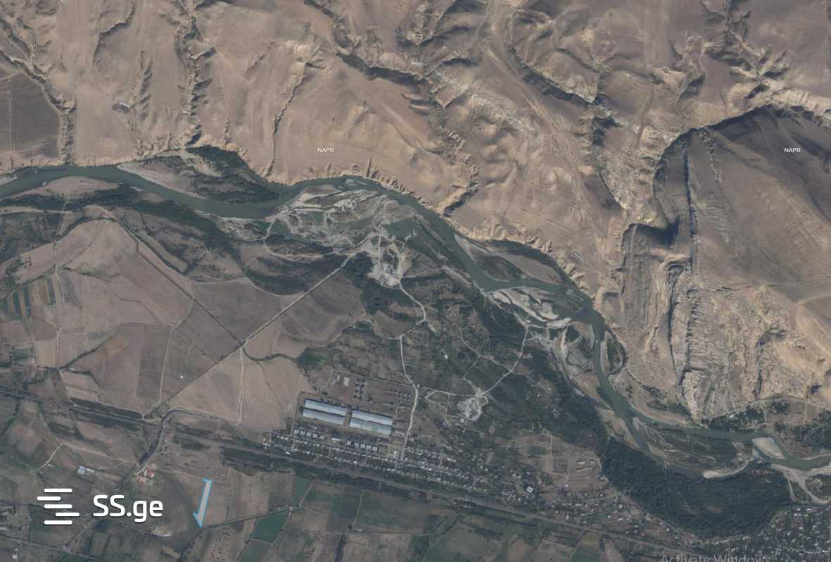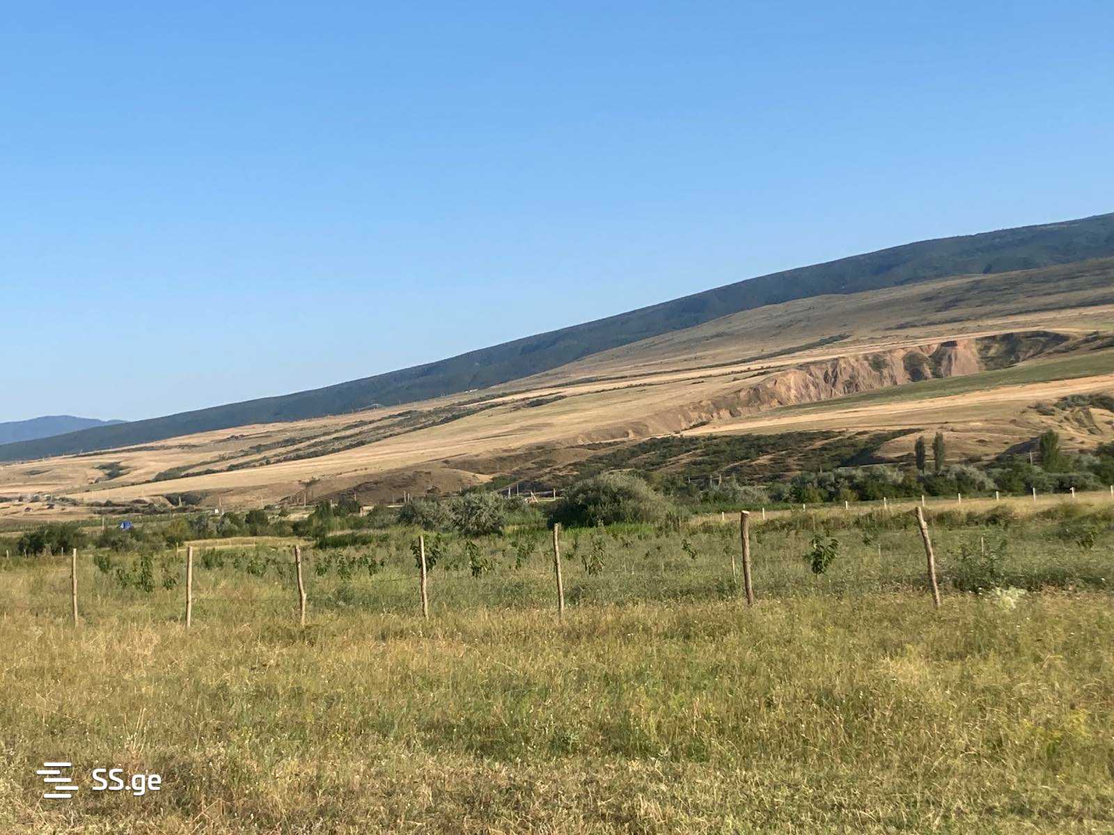 A plot of land for sale in Gori, Khidistavi village, with apple and plum orchard. 1.68 hectares. In 2021, 530 apple trees (golden), 350 apple trees (Aidared) and 100 black plum trees were planted. An irrigation system and a well are arranged. Electricity has also been brought to the site and a storage container has been installed. The plot is fenced with barbed wire and acacia poles. View of Uplistsikhe.
