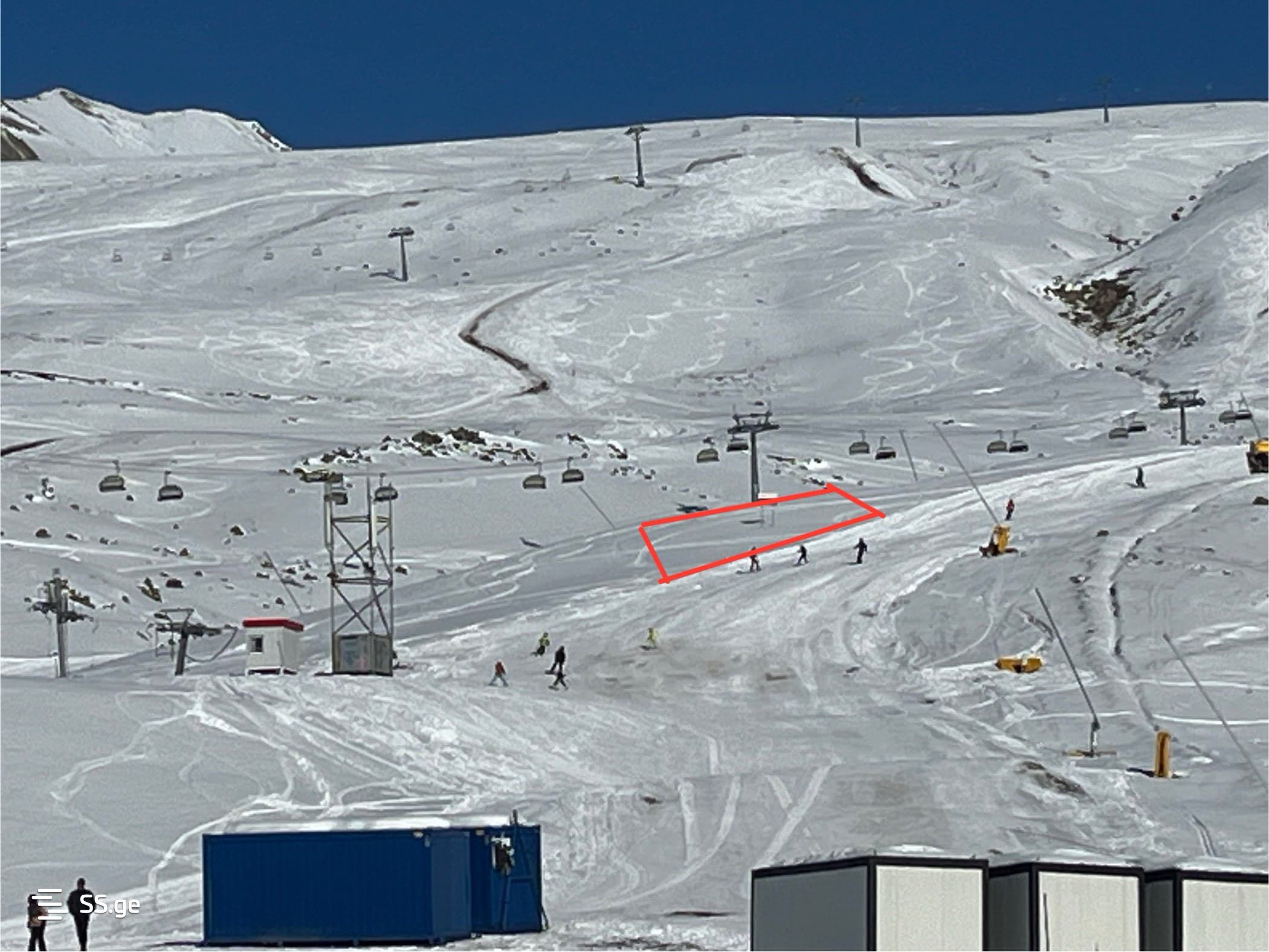 Urgently for sale 900 square meters of land in New Gudauri, 150 meters from the cable car - gondola. Ideal place for commercial activities next to the ski slope, subdivision of the plot is possible.