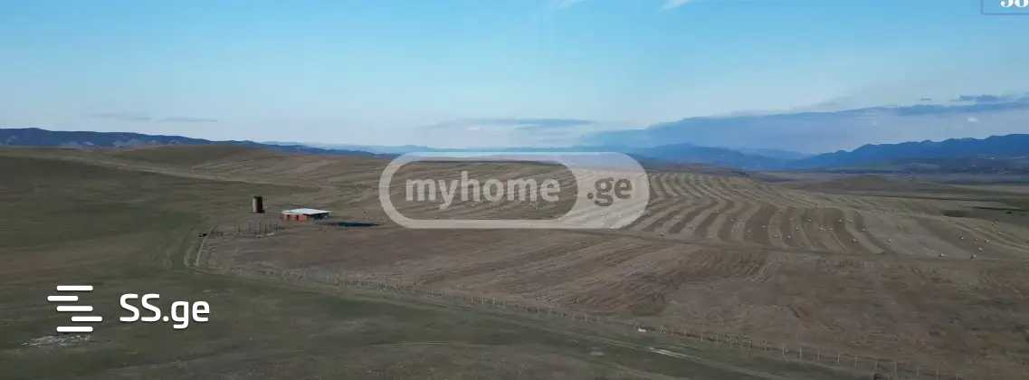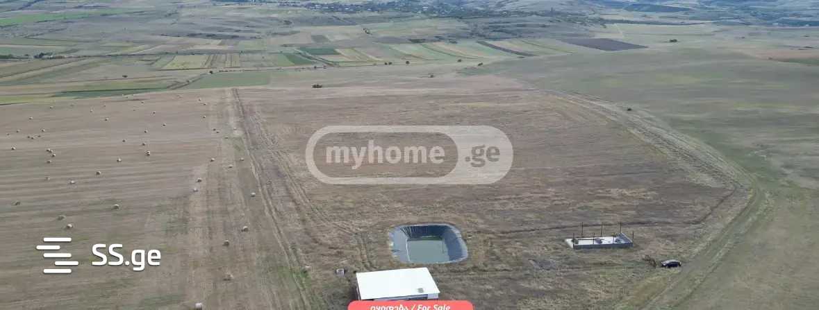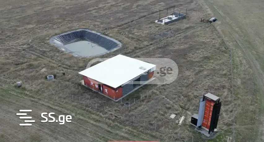 The land is located in the Kaspi municipality, between K'aviti and Akhalkalaki, it is fully fenced, has a 400 sq/m swimming pool, a 220 sq/m building, as well as the second building's slab has been poured and the walls are partially erected, the irrigation system is laid along the full length, and there is also a 15 kW wind turbine, in a month there will also be electricity from Enerpro.