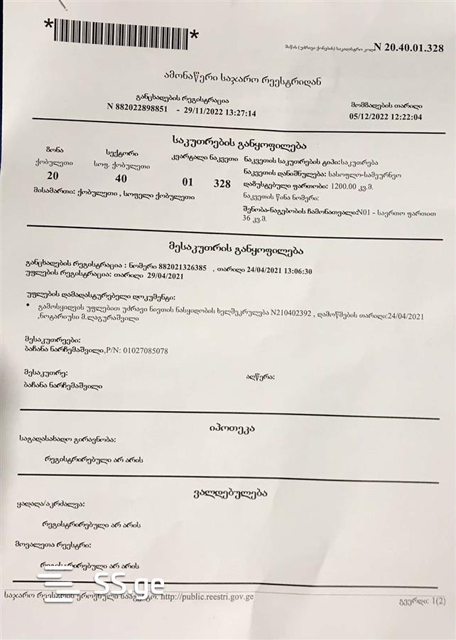 I am the owner. A plot of agricultural land in the village of Kobuleti, Kobuleti district, 2400 sq.m., is for sale from June.