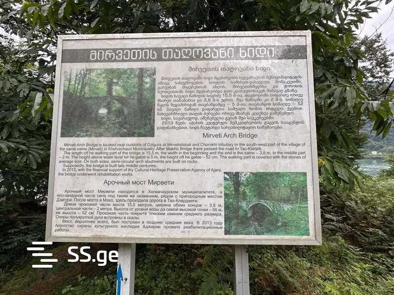 A land plot of 749 sq.m. is for sale located in the village of Mirveti. The area is touristy and surrounded by a diverse forest massif. The place is great for investment along with everything else. The road to the plot is completely organized. There is also a waterfall and historical bridges. All of this is separated from the road by the Mirveti bridge, under which flows the Chorokhi river. Here you will also find a service for boat trips.